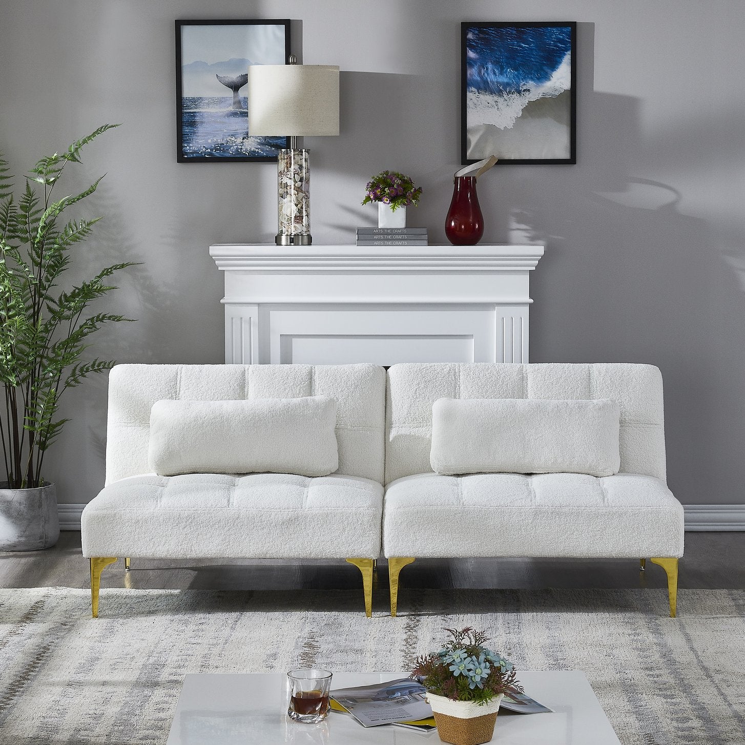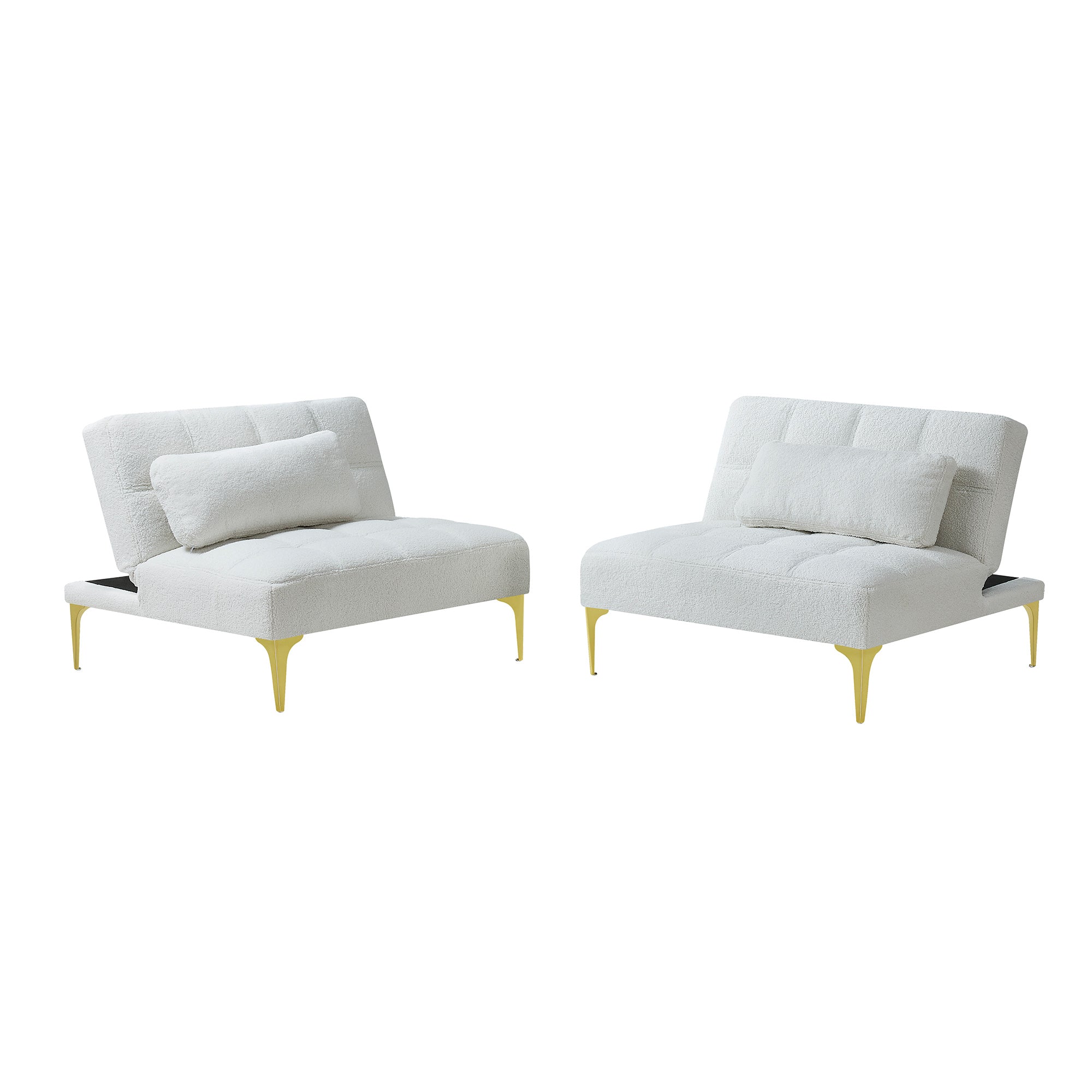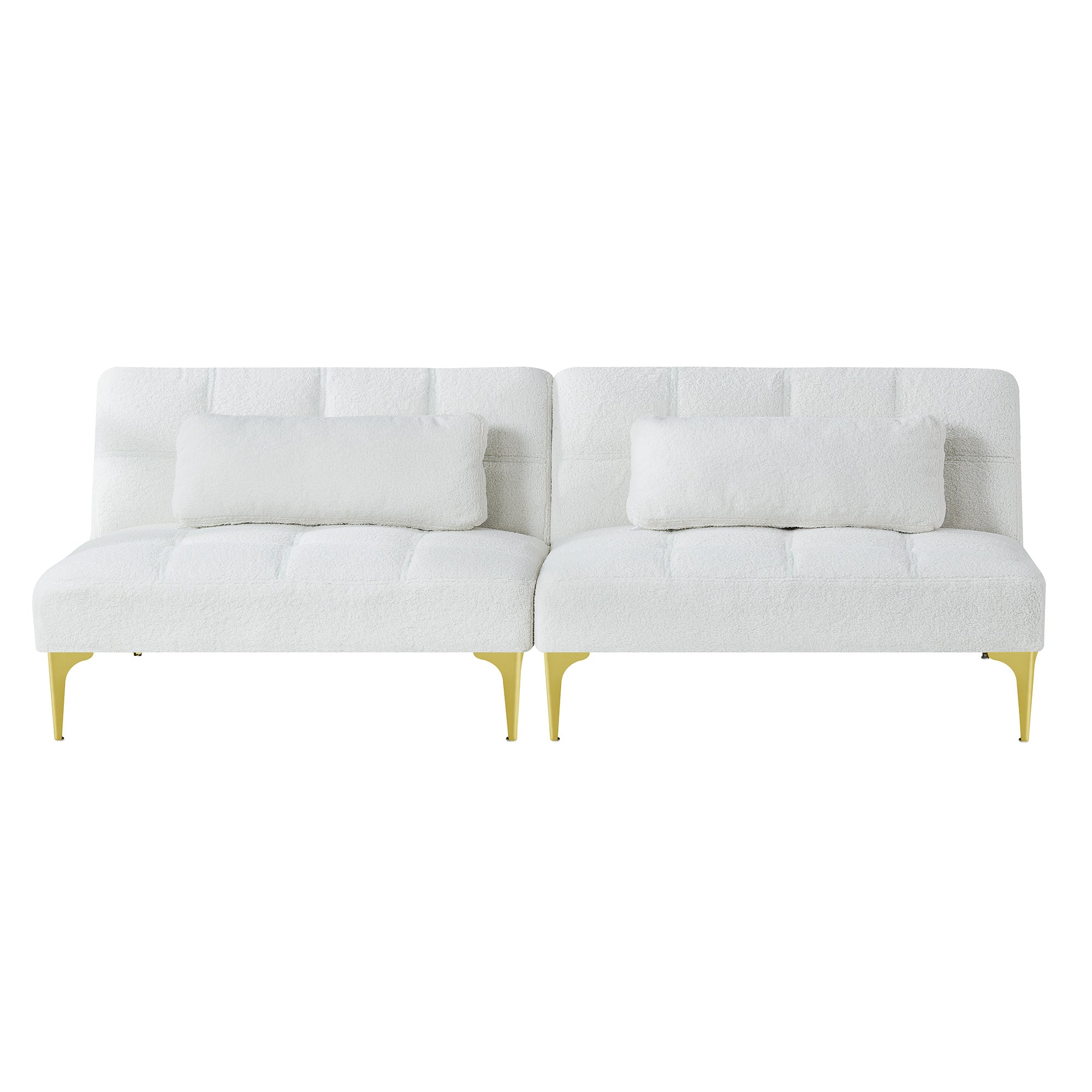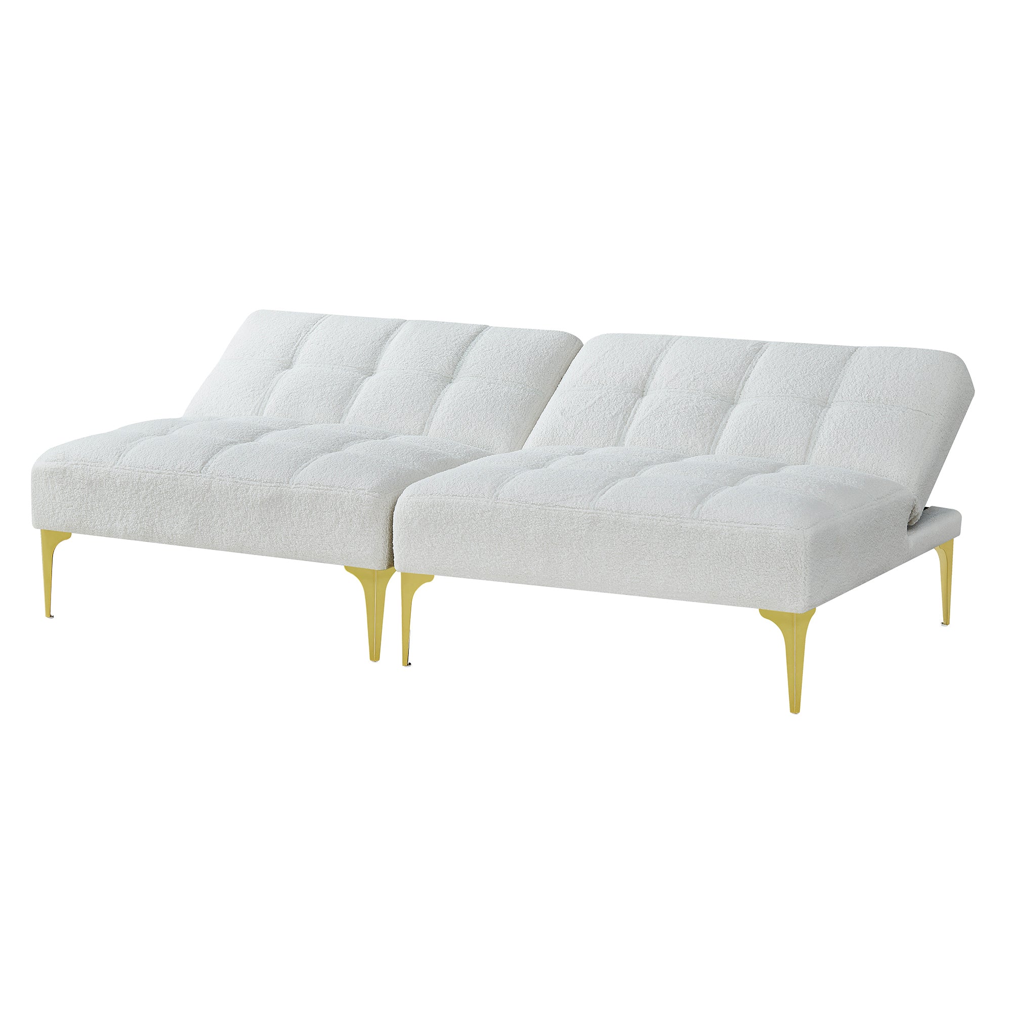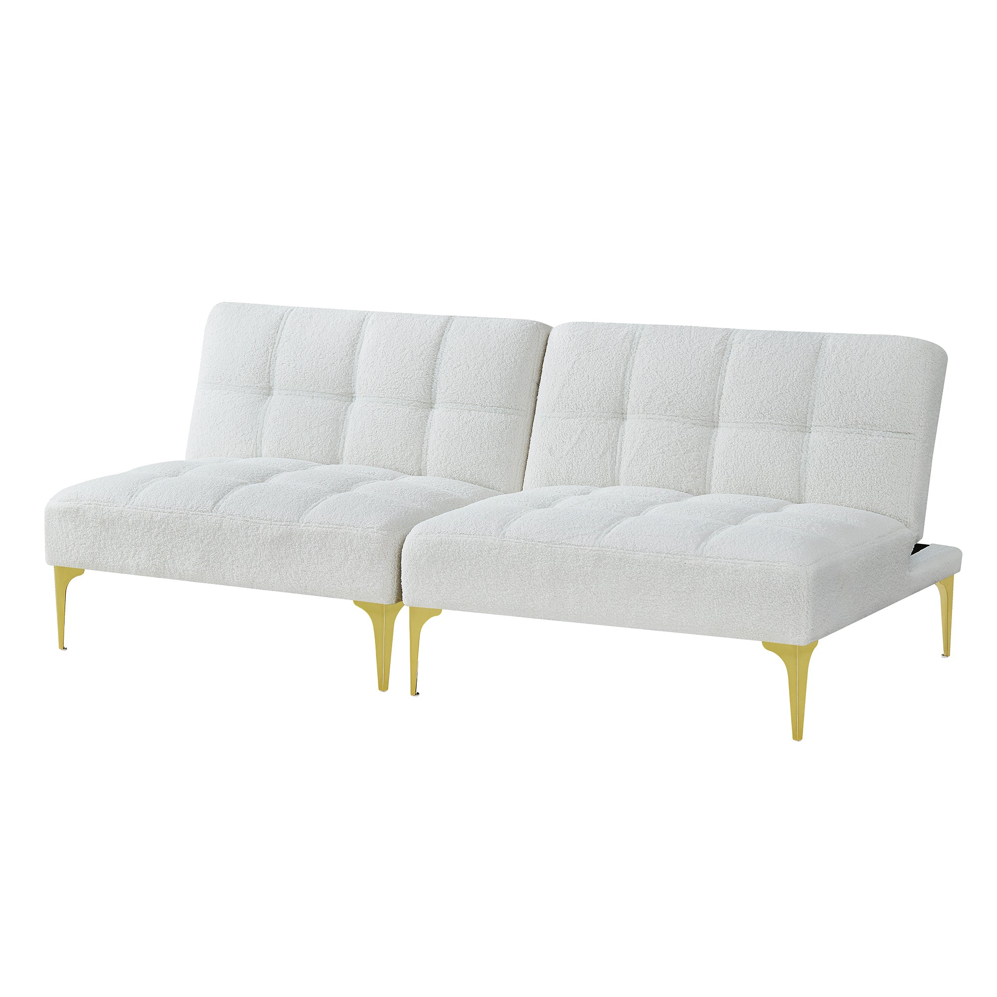 Sink into plush comfort by day and convert to a cozy bed by night—this modern convertible sofa bed blends luxe teddy fabric with chic gold metal legs for a stylish statement in any living space. Designed for versatility and durability, it offers supportive foam seating, a robust mixed-wood frame, and a compact footprint that suits apartments, guest rooms, or home offices.