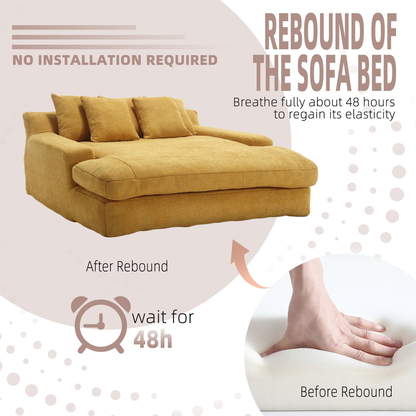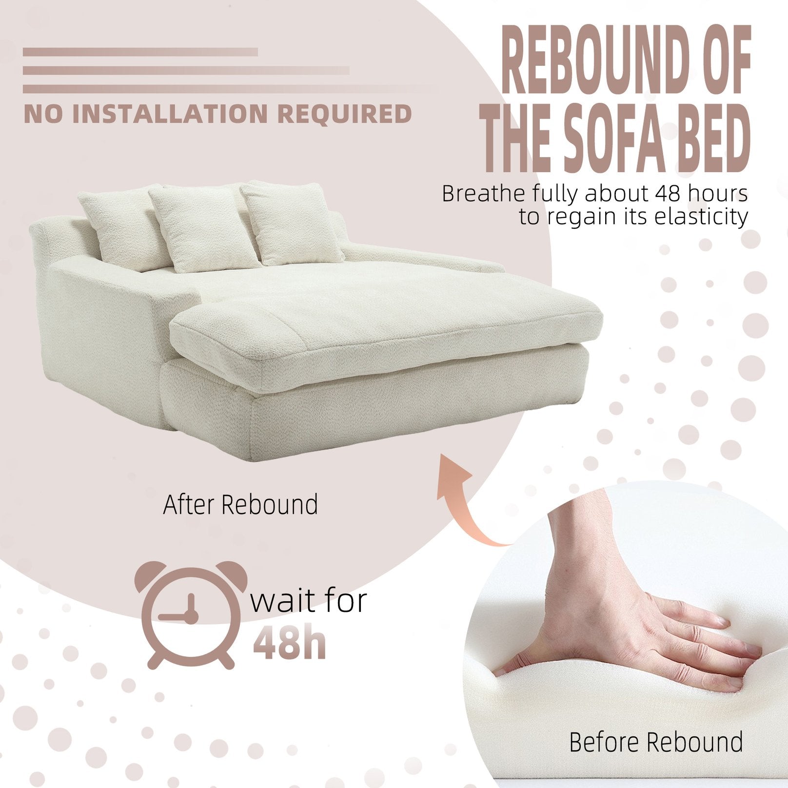 - Ready-to-use, no assembly: Delivered compressed in a compact package—simply unpack and allow 48–72 hours for the sofa to expand to its full shape.