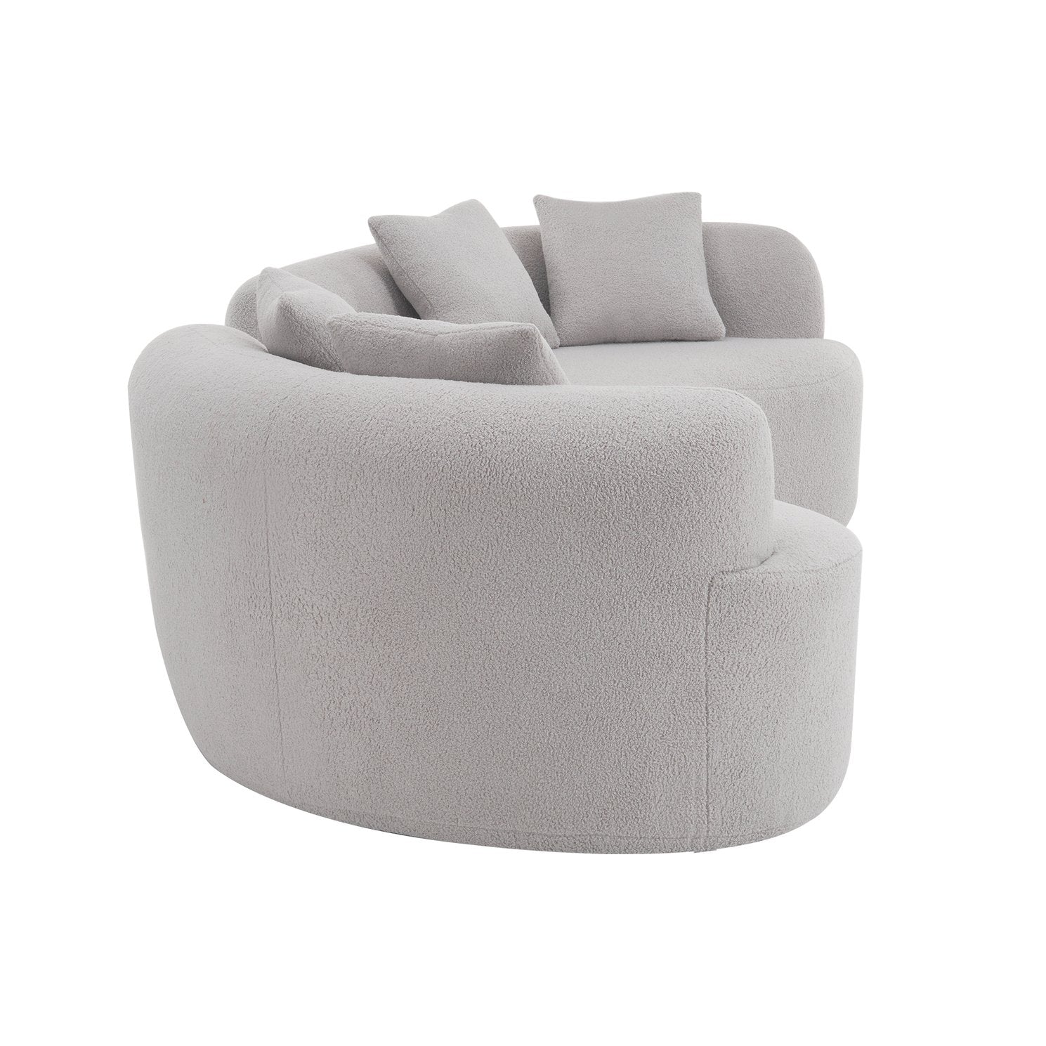 Bring contemporary comfort and effortless style to your living space with this curved four-seater sofa. Upholstered in plush teddy velvet and filled with full-compression sponge and springs, it offers cloud-like seating that’s both supportive and inviting—perfect for lounging, entertaining, or maximizing compact apartment layouts. The modular sections make placement and transport simple, while the modern curve creates a sophisticated focal point.