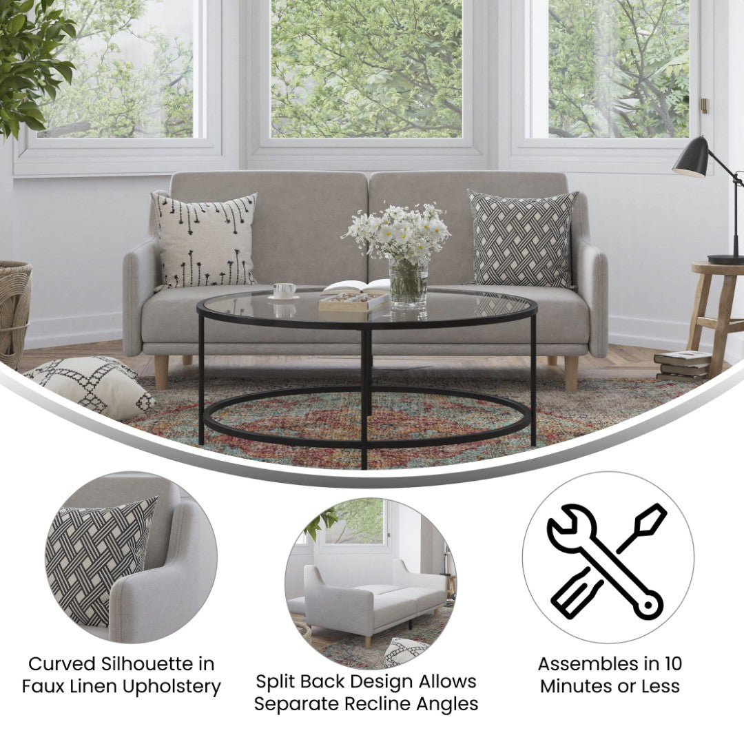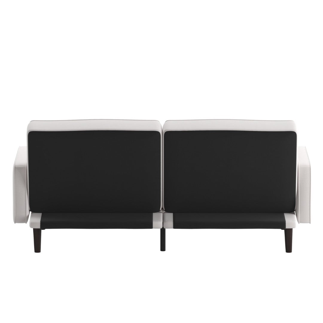 Bring versatile mid-century modern style and comfortable functionality to any living space with this convertible split-back futon. Thoughtfully designed for small apartments, guest rooms, or multifunctional living areas, it combines clean lines, curved armrests, and durable construction to serve as a sofa, recliner, or full sleeper while keeping a polished, tidy appearance.