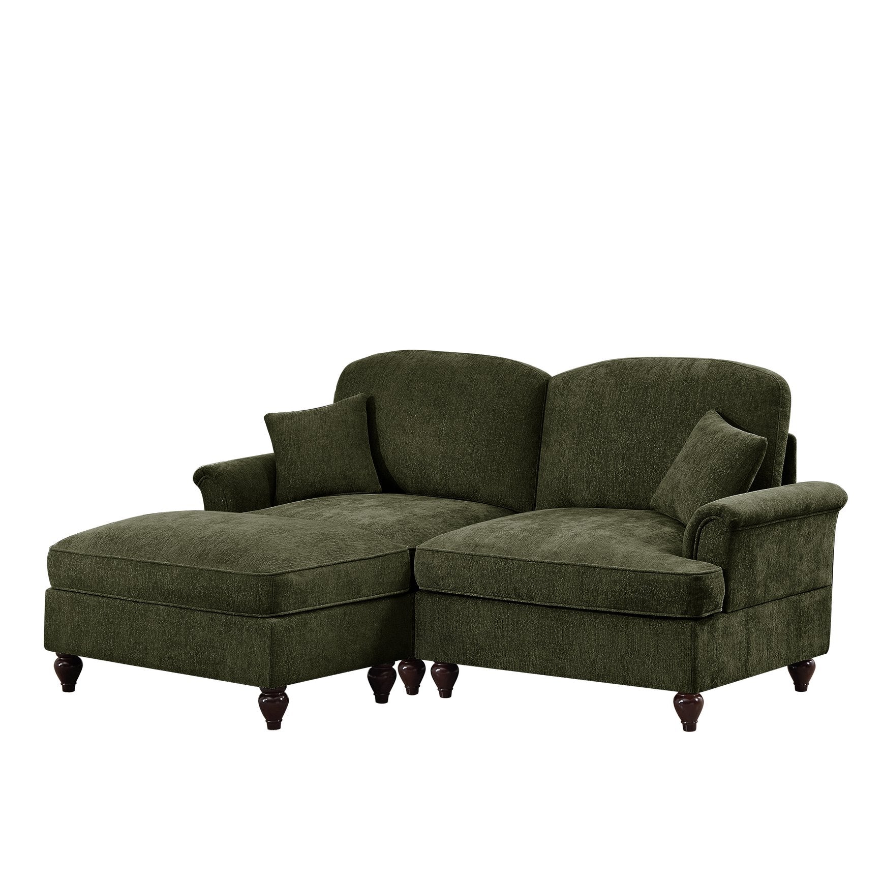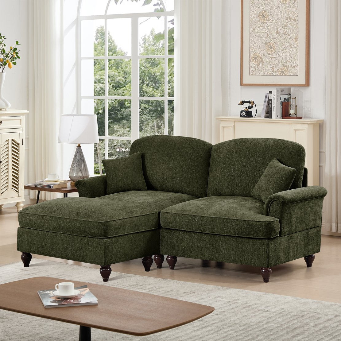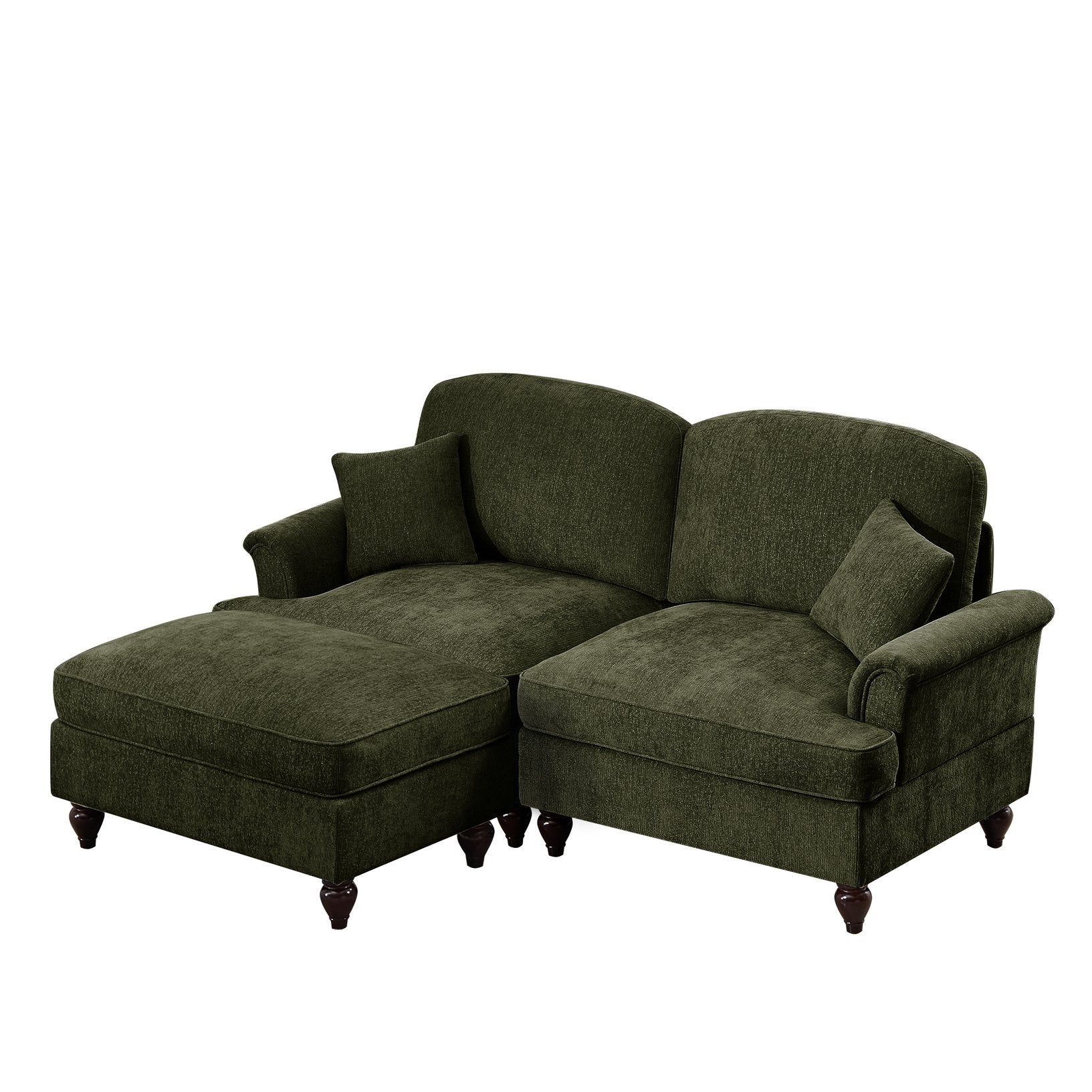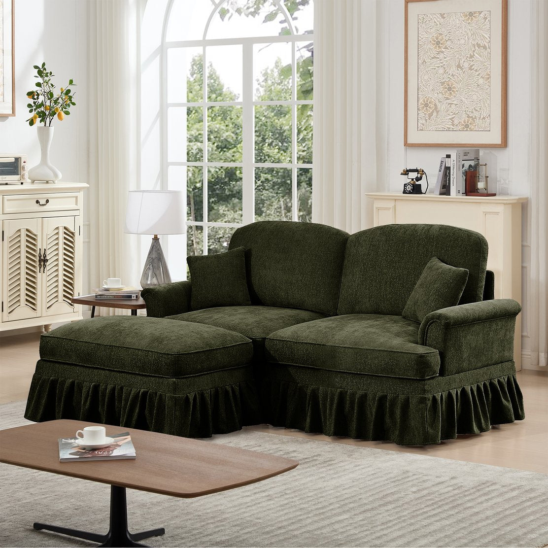 Sink into timeless comfort with this elegant mid-century modular two-seater sofa. Designed for style and versatility, it combines plush chenille upholstery, sculpted flared arms and a petal-shaped backrest to create a refined focal point. The removable ruffled pleat skirts and movable ottoman let you switch between a formal, feminine look and a streamlined mid-century silhouette—giving you two distinct styles in one piece. Ideal for living rooms, apartments, or cozy reading nooks, this sofa balances decorative appeal with everyday functionality.