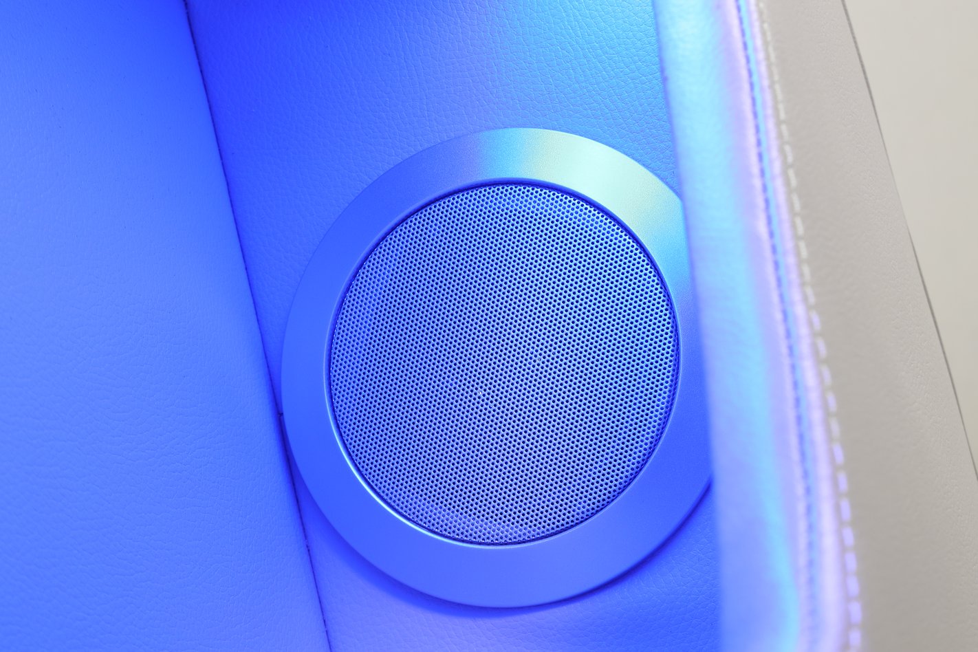 - Design details: Modern silhouette with diamond-shaped stitching on the backrests and built-in LED lighting along the base and sides for ambient accent lighting.
