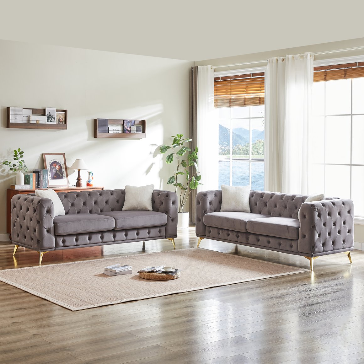 - Crafted from a soft velvet fabric with tufted buttons, this sofa adds a soft, cozy touch to any living space!