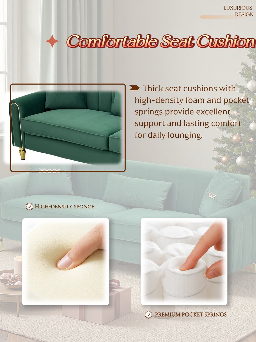 - Cushion Construction: High-resilience foam combined with pocket coil springs in the seat cushions for balanced support, reduced sagging, and sustained comfort.