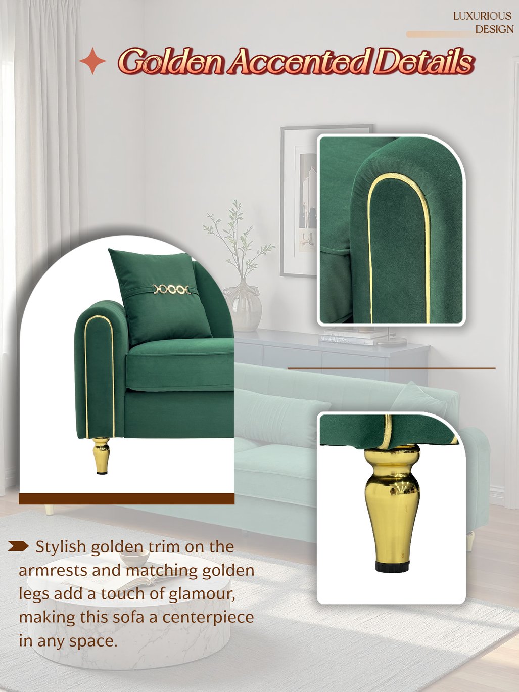- Design Aesthetic: Clean, minimalist silhouette with subtle metal accents that complements contemporary and modern décor.