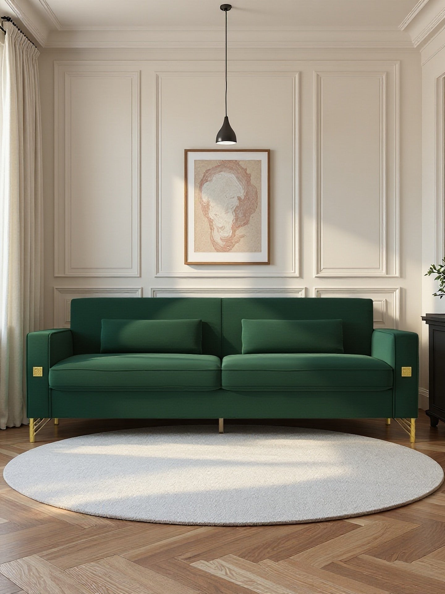 Elevate your living room or office with this luxurious emerald green velvet sofa, combining glamorous gold accents with contemporary design for a statement-making centerpiece. Upholstered in soft, skin-friendly velvet and supported by high-rebound cushioning and independent springs, it delivers both style and lasting comfort for everyday use and entertaining.