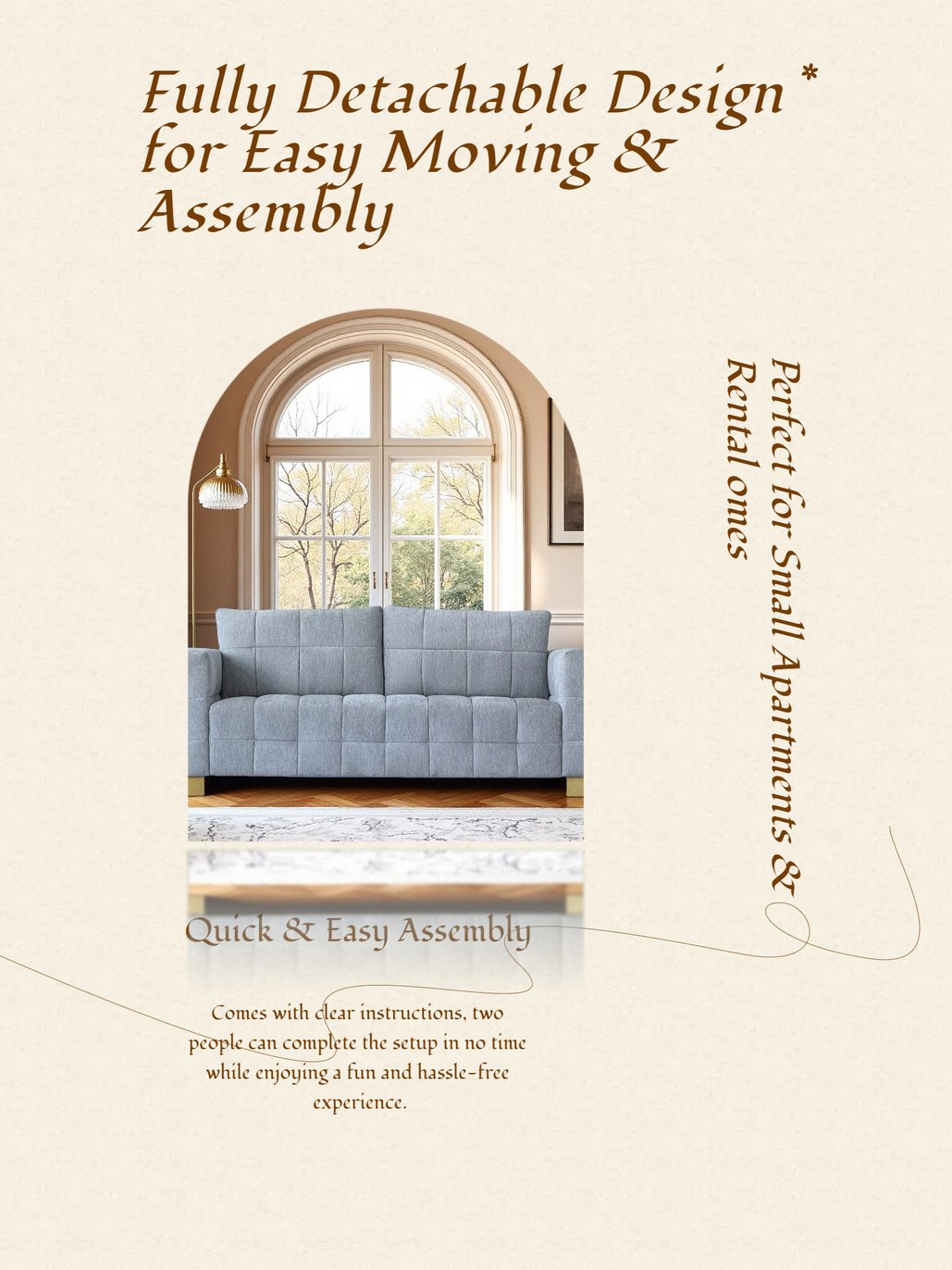Bring comfort and understated elegance to your living space with this chenille-blend sofa. Soft, silky, and skin-friendly, the fabric and supportive seat design deliver everyday comfort while subtle metallic accents and clean lines provide a refined, versatile look that suits modern, industrial, or eclectic interiors.