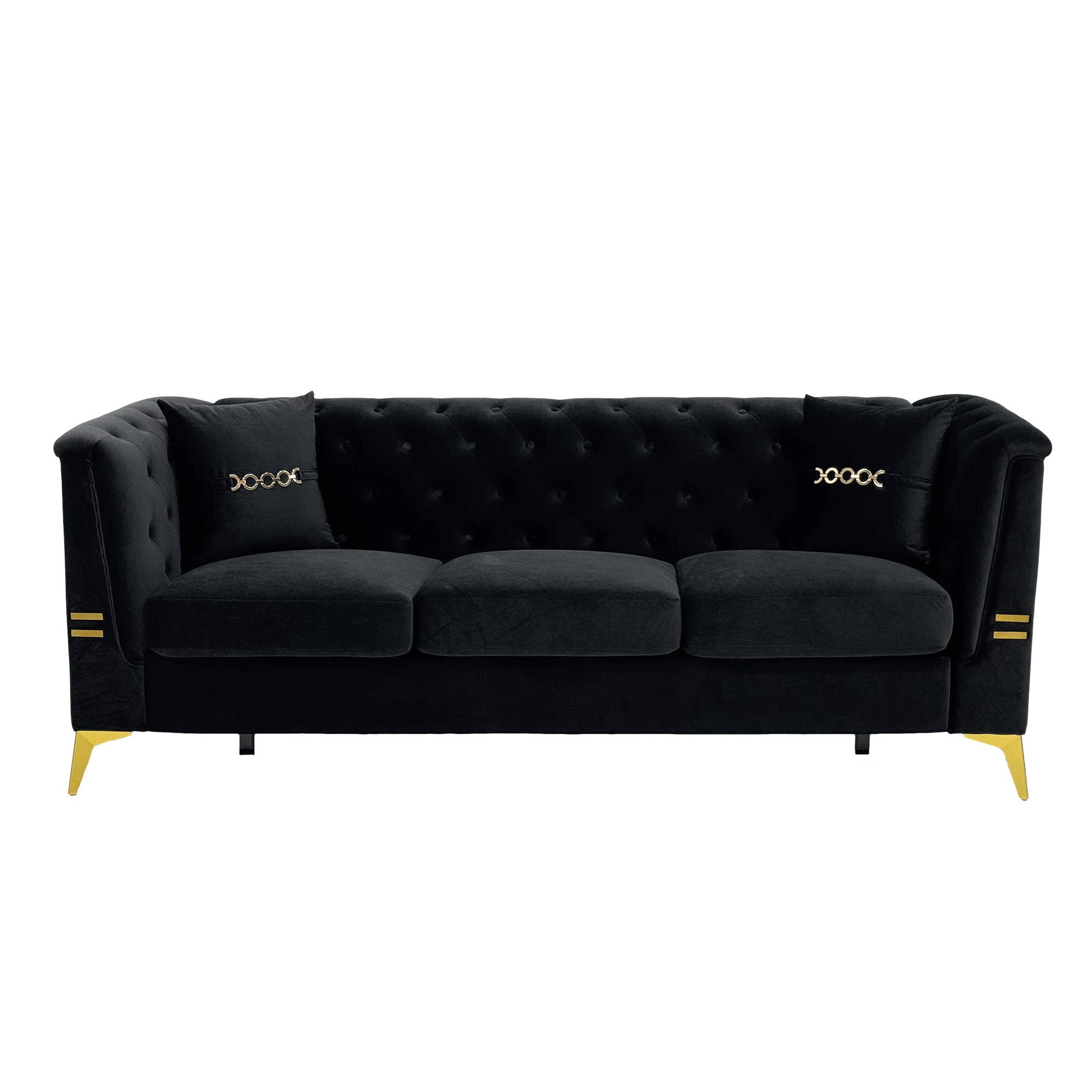 Elevate your living space with this elegant pair of modern 3-seater sofas that combine plush comfort with a refined, contemporary look. Upholstered in soft, durable velvet and supported by gold-tone metal legs, this set is designed for everyday lounging, entertaining, and stylish presentation in homes, apartments, or guest areas.