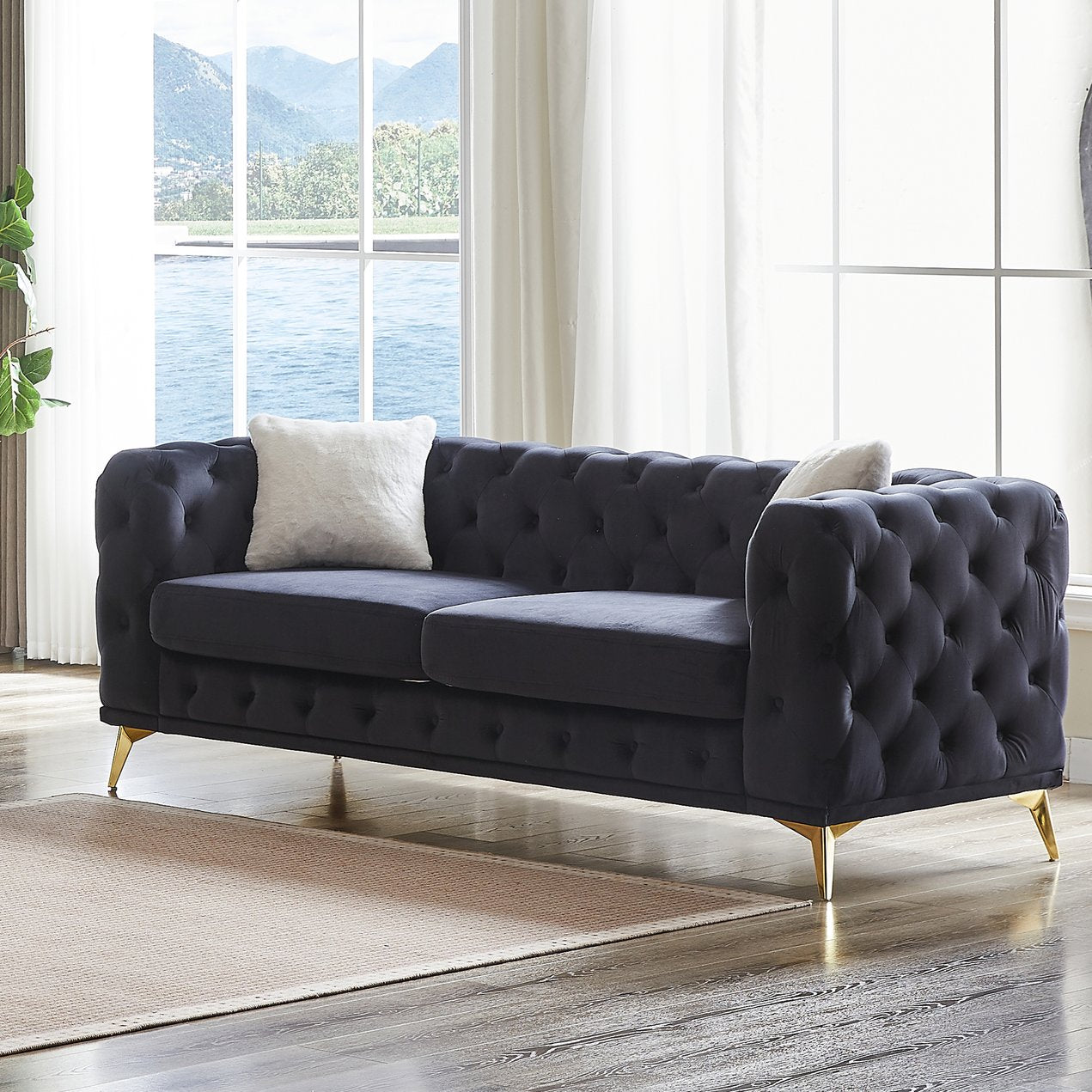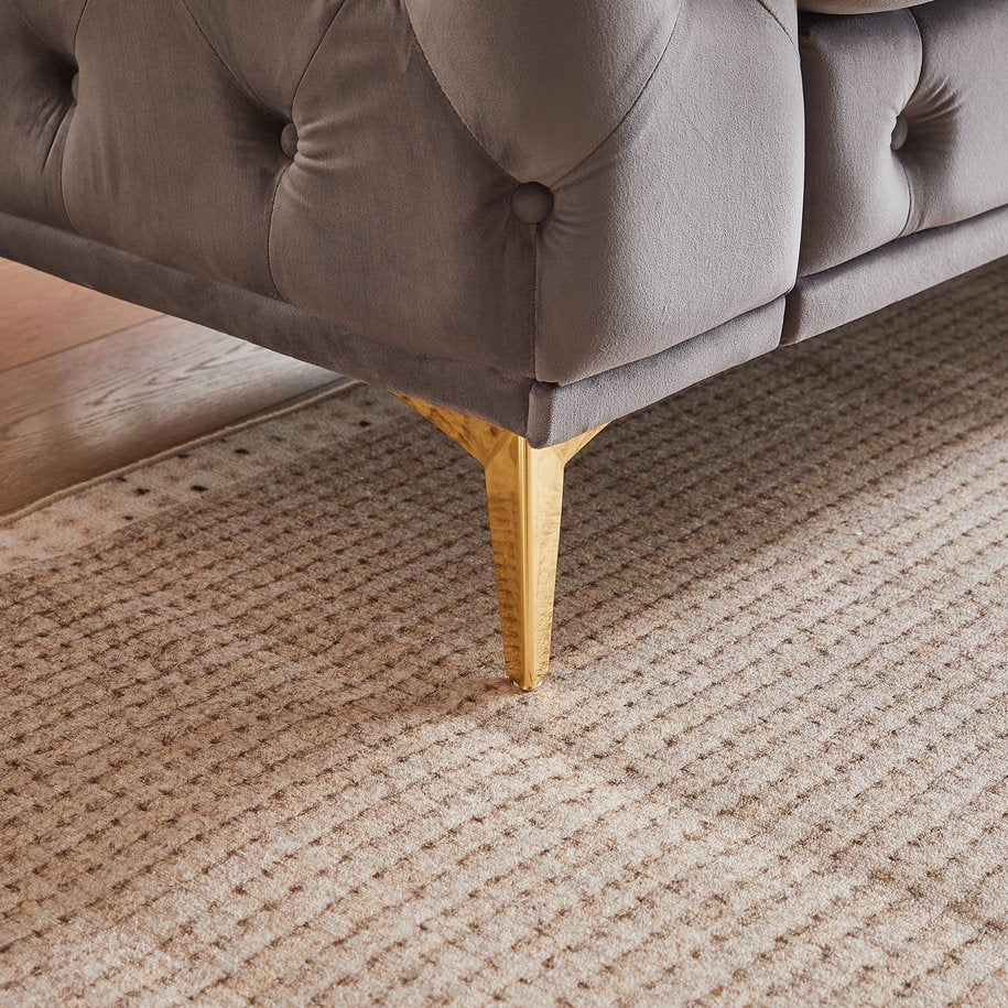 - Featuring a soft velvet fabric, diamond-patterned fully sewn tufting and a buttoned design, this sofa has a luxurious look that will enhance your interior.