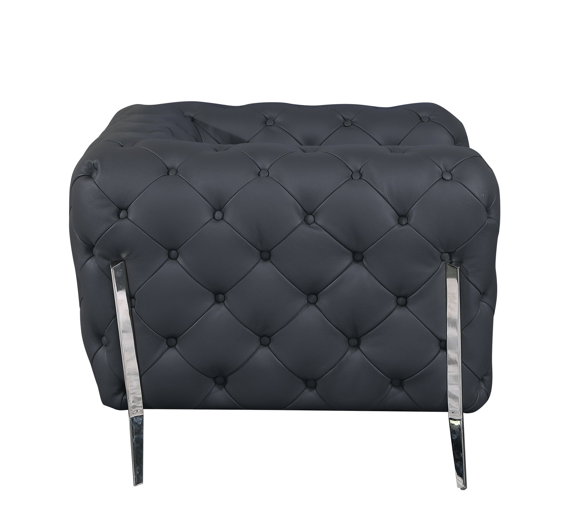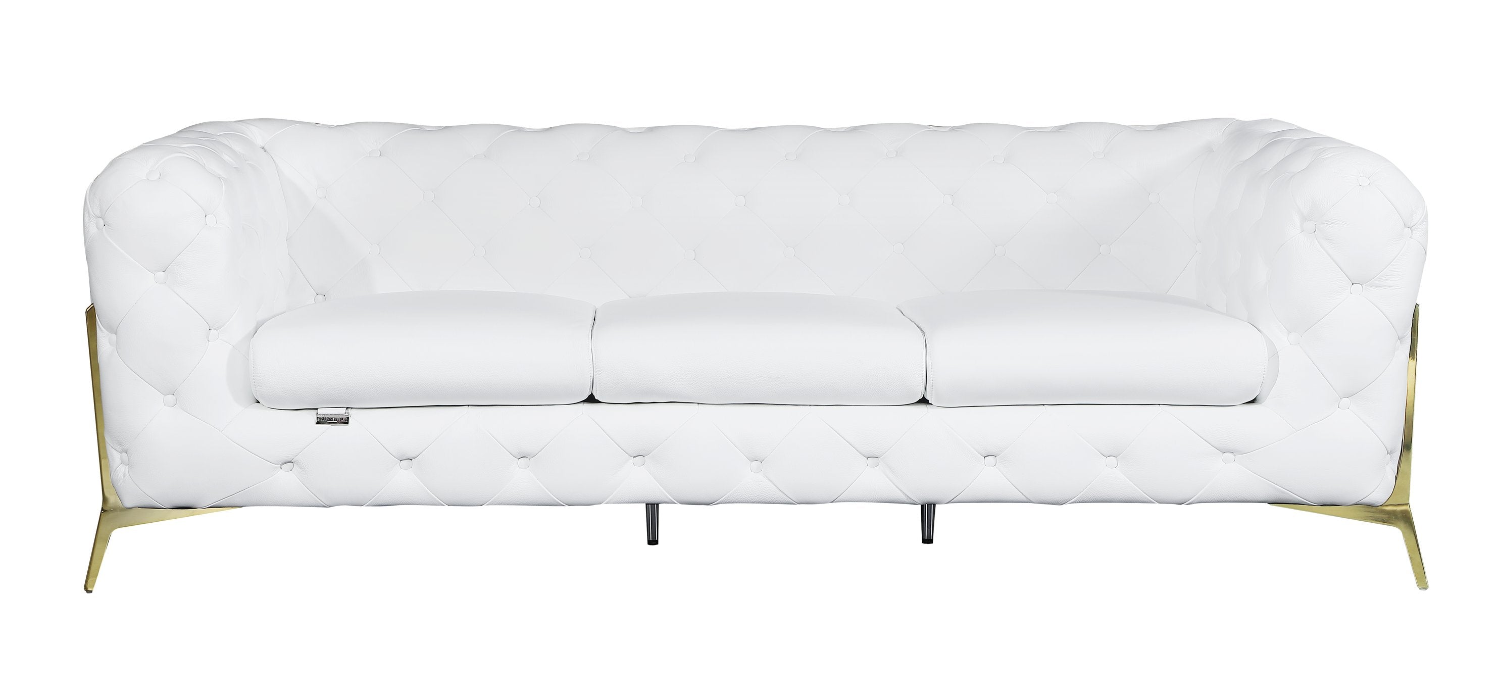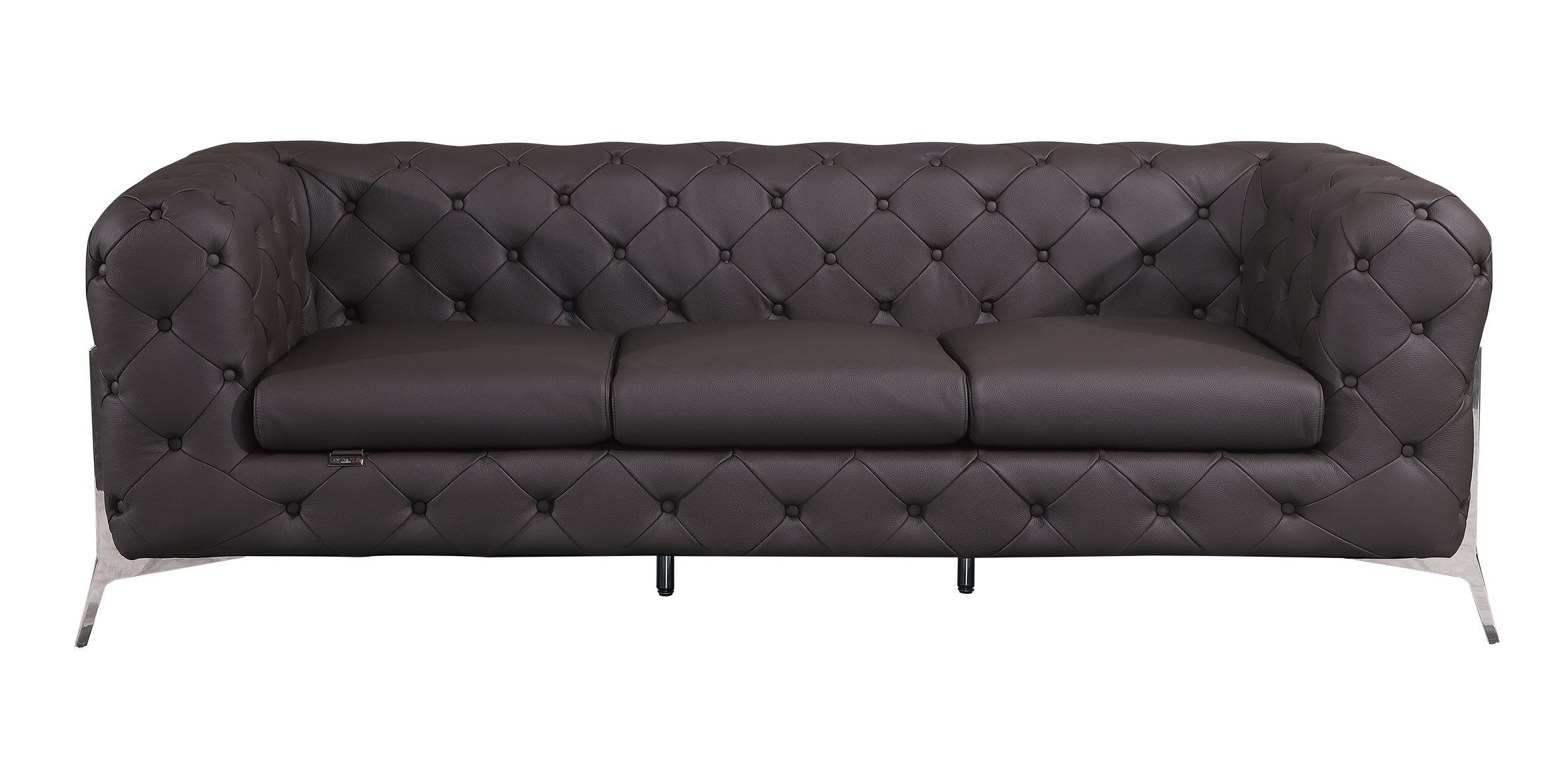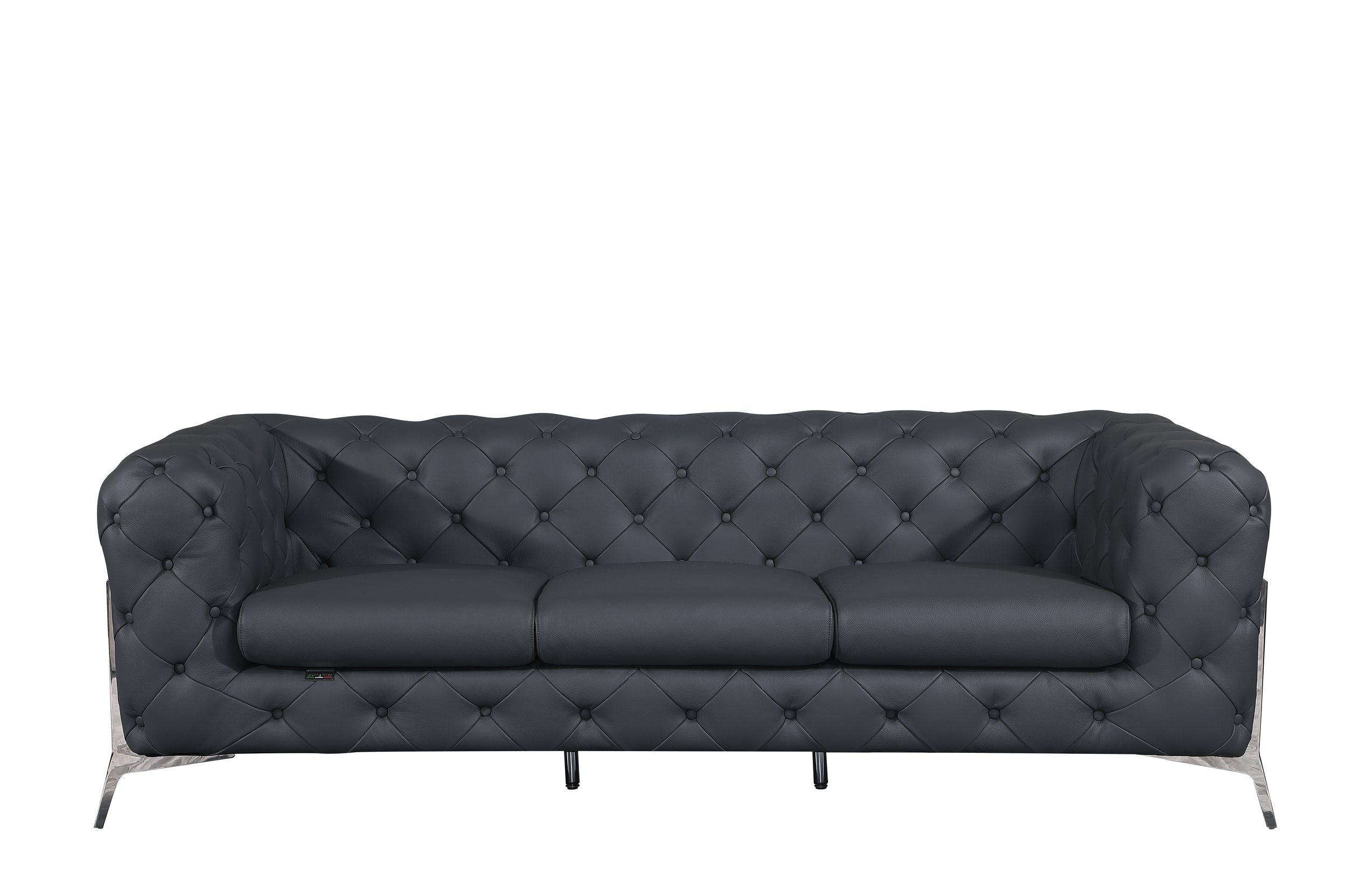 This elegant transitional sofa blends luxurious Italian craftsmanship with durable construction to elevate any living space. Upholstered in top-grain 100% Italian leather, it offers a refined look and a comfortable seating experience backed by a solid frame and contemporary stainless-steel accents — ideal for modern and classic interiors alike.