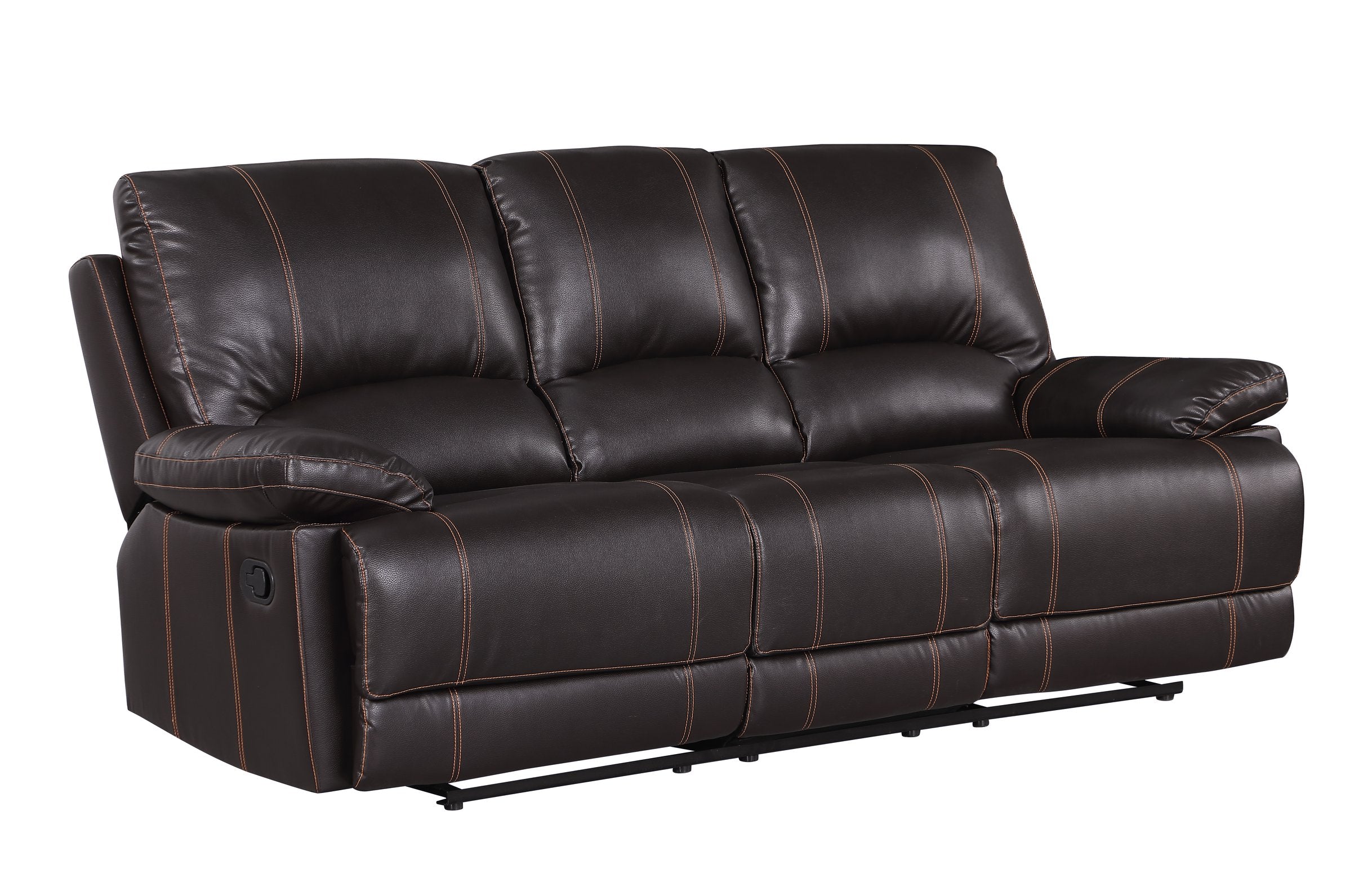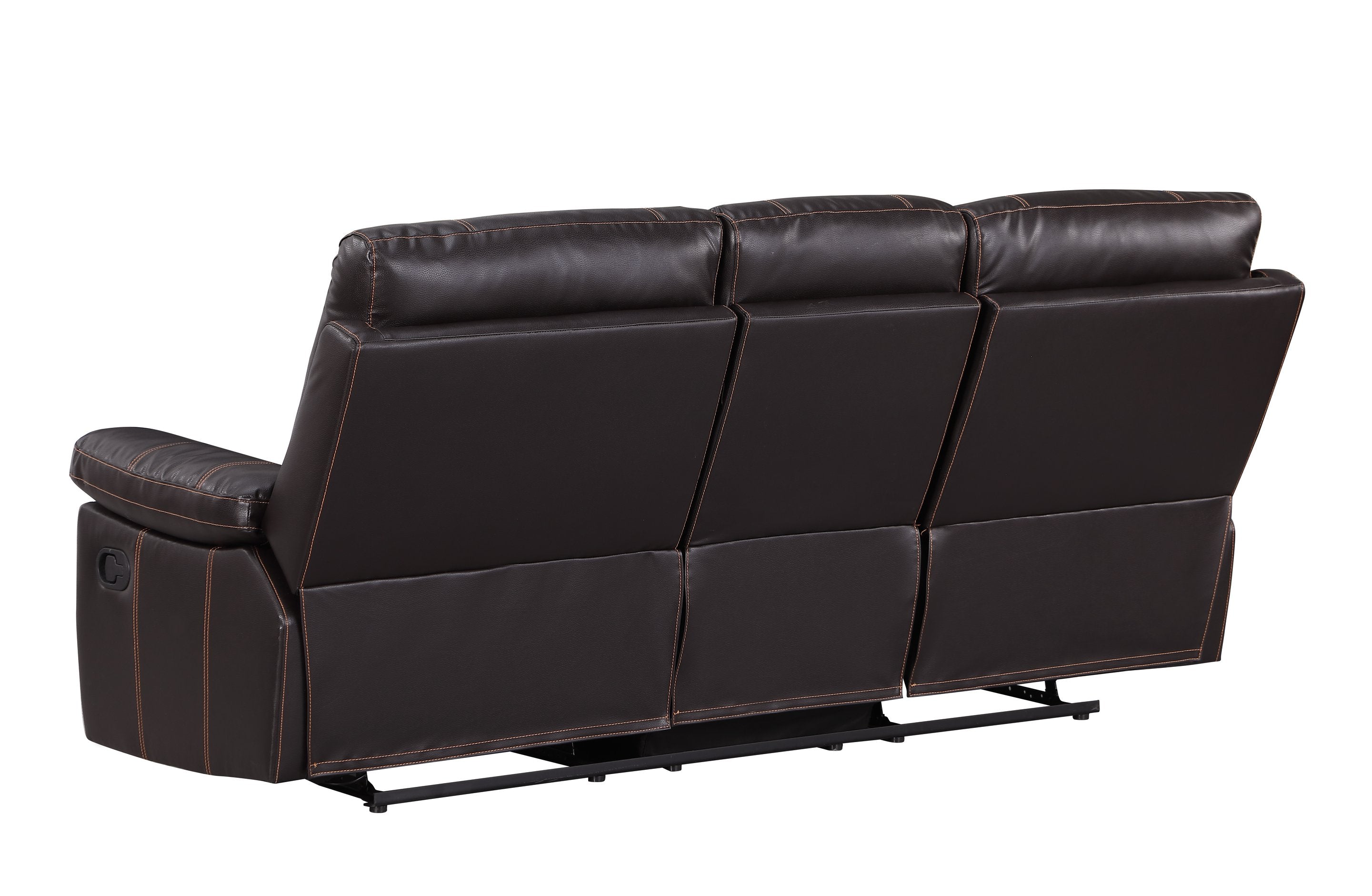 Sink into luxury with the Global United Leather-Air Reclining Sofa — a stylish, durable centerpiece designed for comfort and contemporary living. Upholstered in rich brown leather and built with supportive engineering, this sofa blends plush seating with a sleek stainless steel base for a modern look that performs as well as it appears.