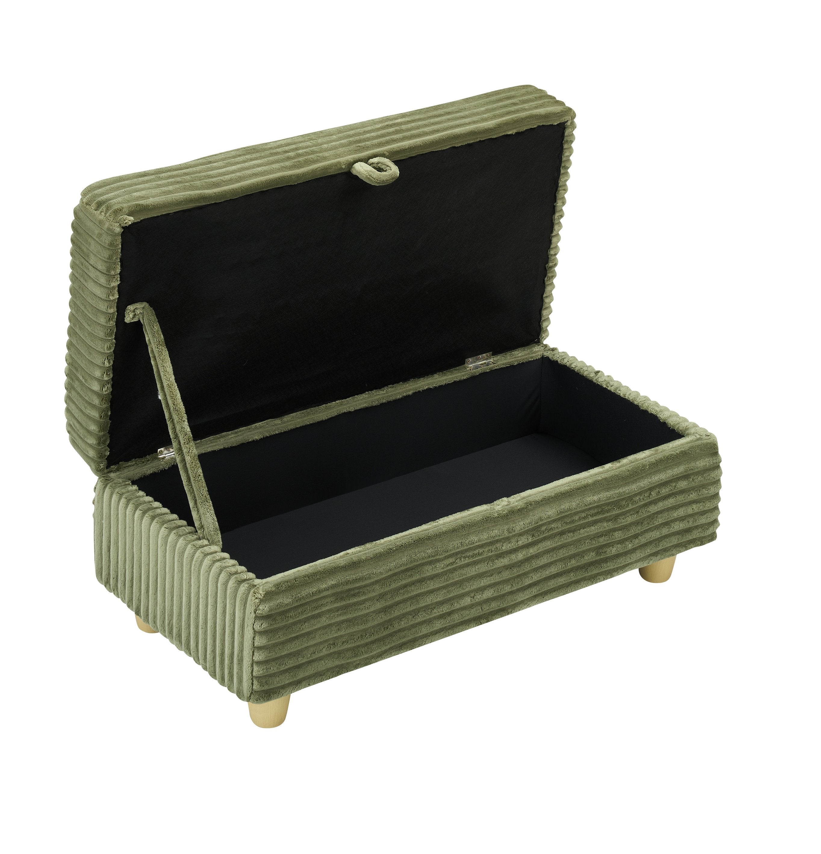 Bring comfort, clever storage, and modern style to your living space with this green corduroy single sofa set. Upholstered in soft corduroy fabric and supported by a solid wood frame, the set includes a single-seater sofa with one main pillow, two removable throw pillows, and a matching ottoman that doubles as a storage chest. Thoughtful design details—built-in armrest compartments and an ottoman with lift-top storage—help keep remotes, magazines, and throw blankets neatly organized while maintaining a clean, contemporary look.