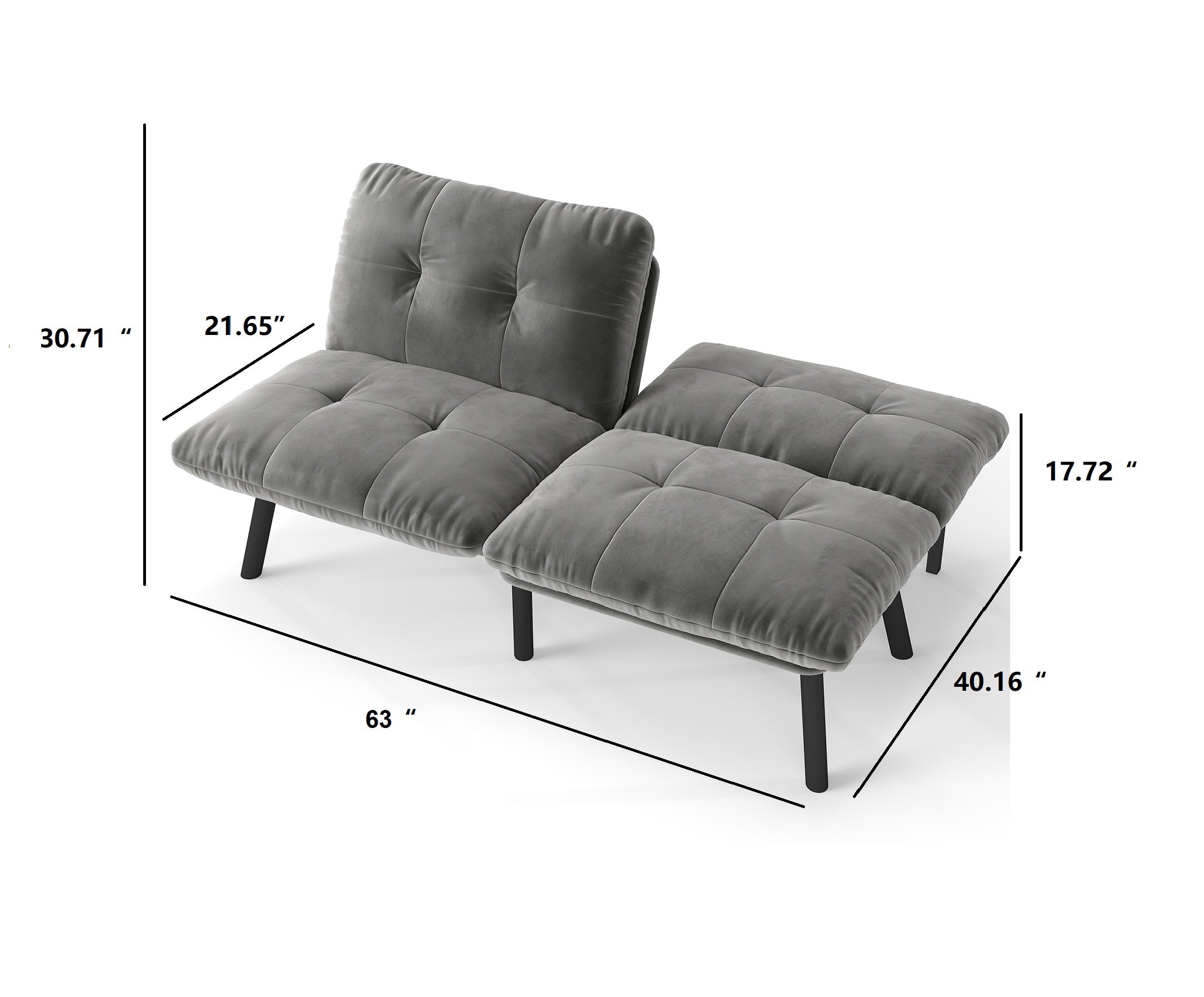 Convert your living area into a comfortable, stylish, and highly adaptable space with this modern grey convertible sofa bed. Upholstered in soft velvet and supported by a durable metal frame, it transforms effortlessly from sofa to lounge chair to bed—making it ideal for small apartments, guest rooms, or multipurpose living spaces. Thoughtful ergonomics, sturdy construction, and easy assembly ensure everyday convenience and long-lasting comfort.