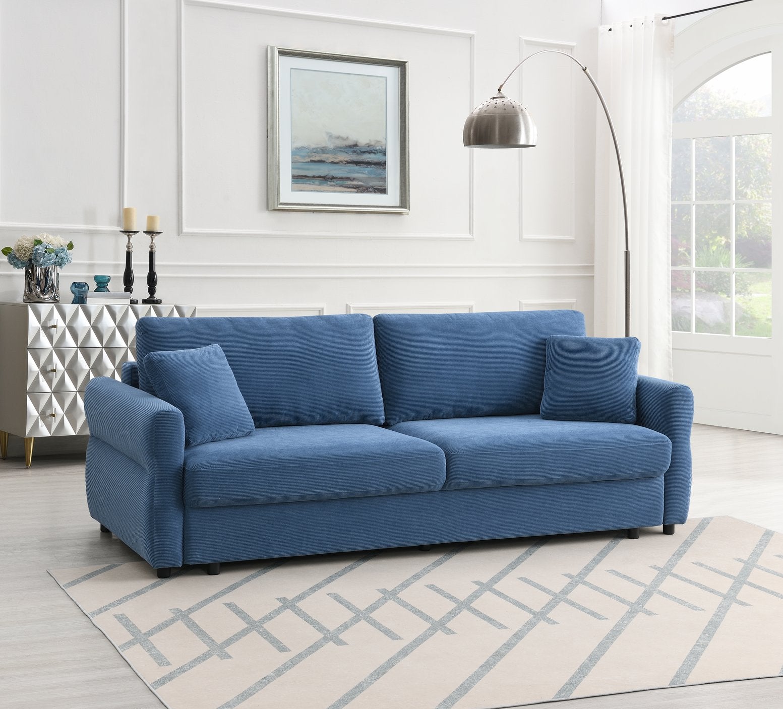 - This stylish fabric pull-out sleeper sofa is available in two colors: blue and beige, designed to bring comfort and functionality to any living space.