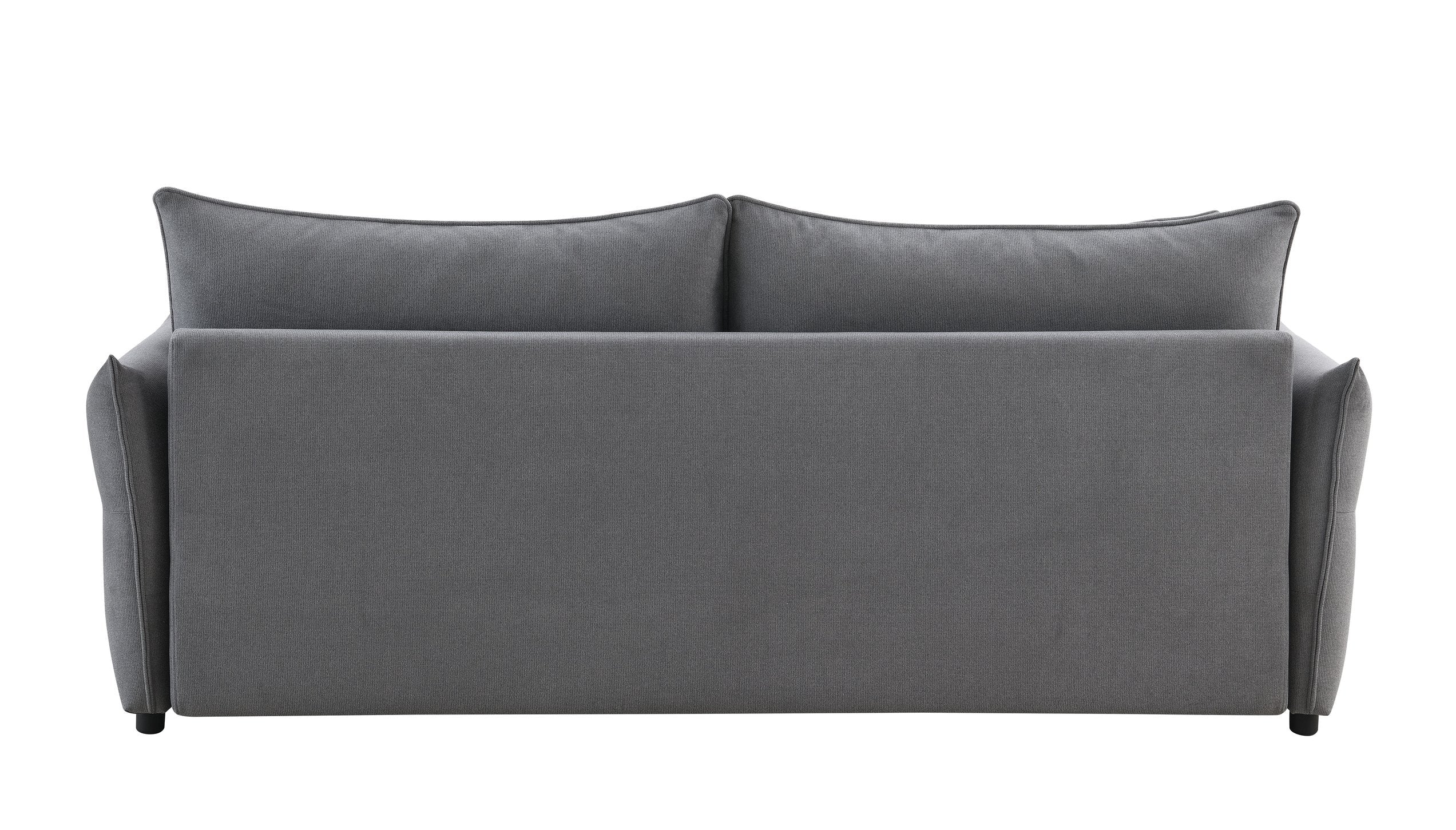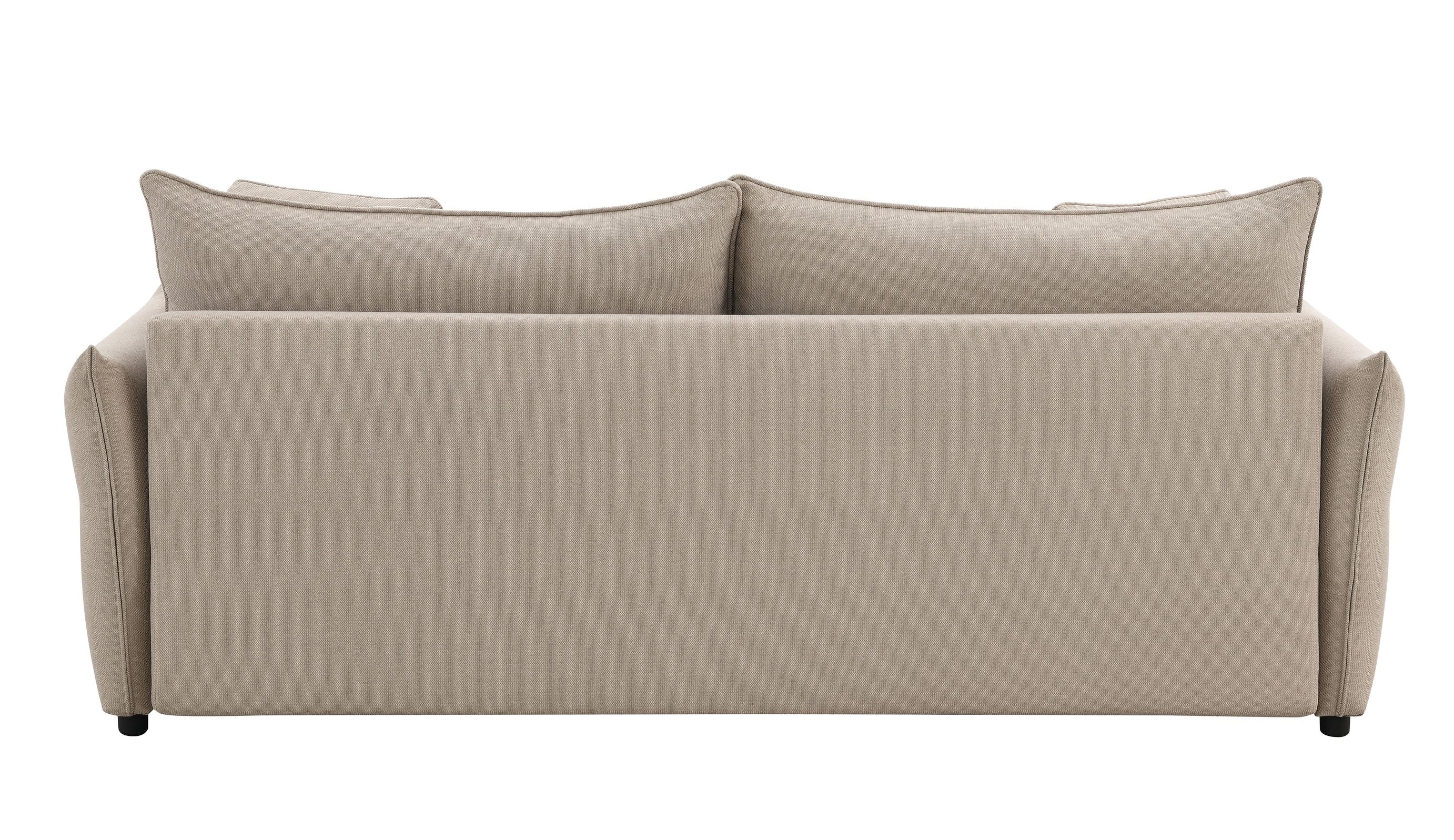 - The sofa features removable back cushions for added flexibility and convenience, along with four matching toss pillows that can also double as sleeping pillows when the sofa is converted into a bed.