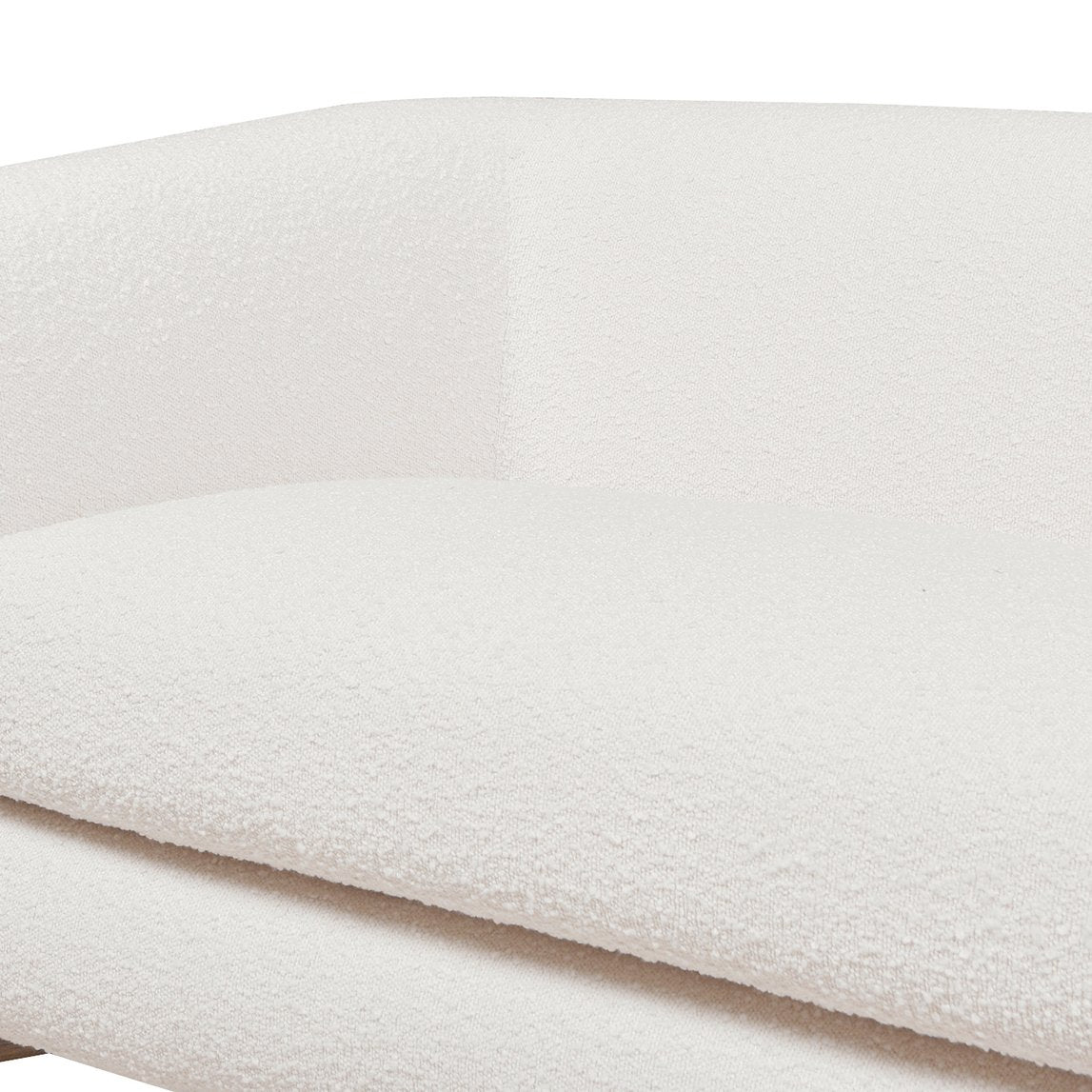 - Upholstery: Faux sherpa bouclé with a dimensional nubby tweed texture for a plush, tactile look