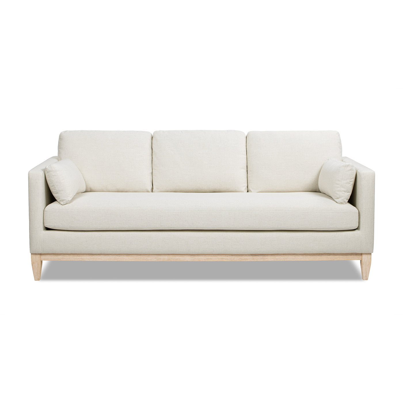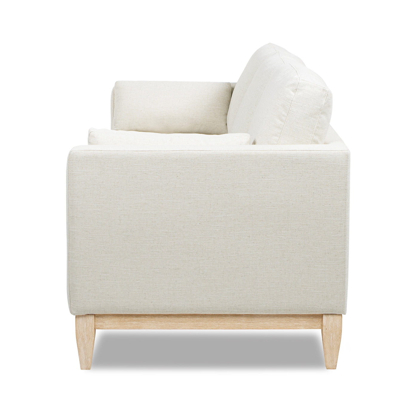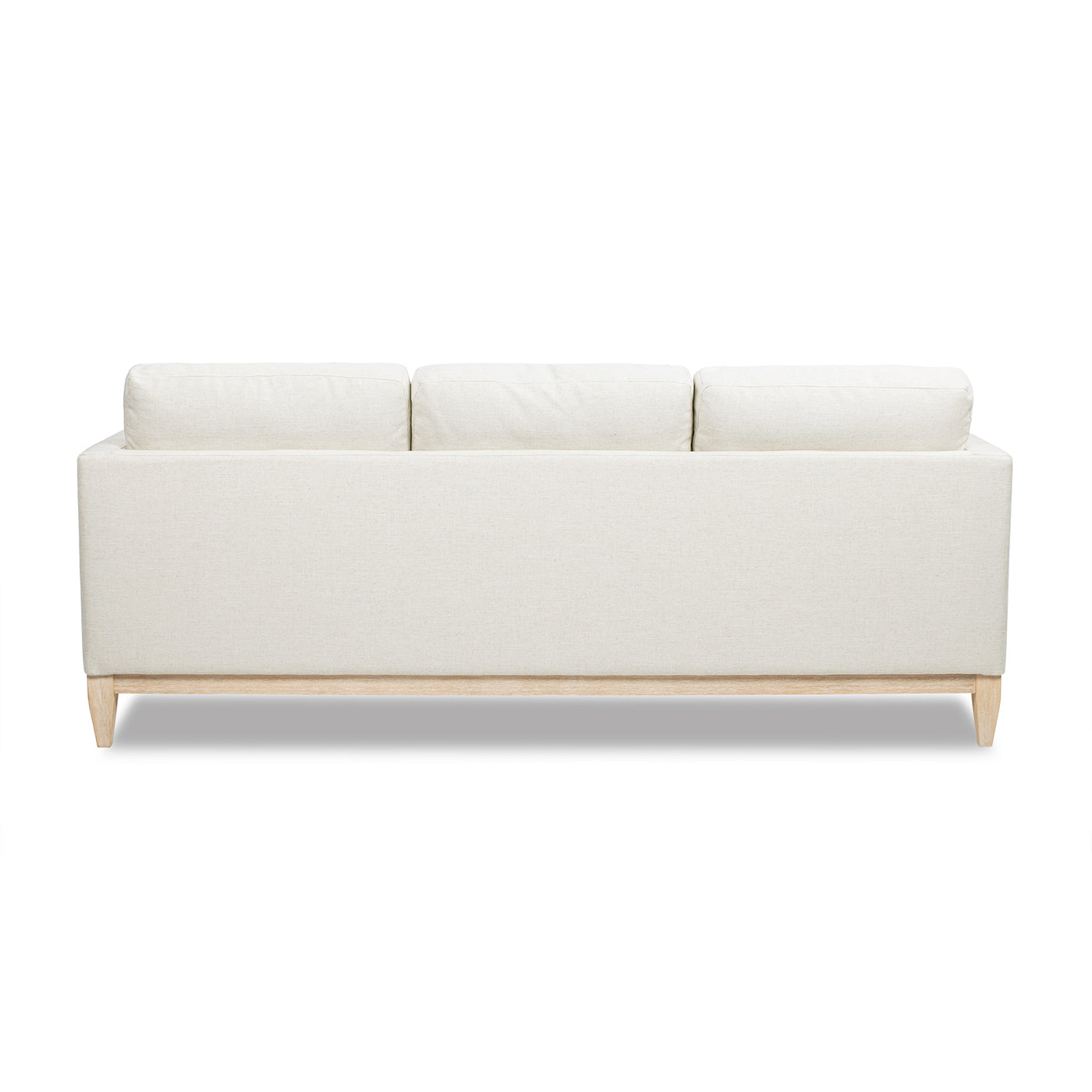 Bring relaxed, modern farmhouse style to your living space with this generously sized sofa in flax white linen. Designed for everyday comfort and easy care, it pairs plush, supportive seating with clean-lined, versatile styling—ideal for family rooms, open-plan living areas, or guest-ready spaces. The neutral linen-blend upholstery and natural wood base give a warm, timeless look that coordinates with a wide range of decor.