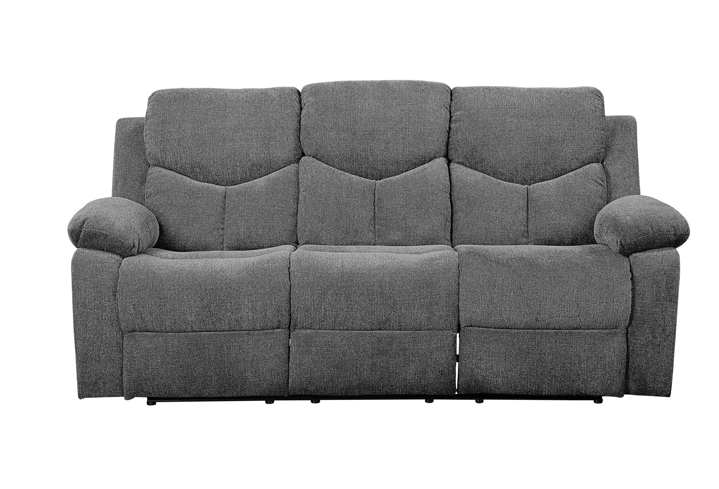 Sink into relaxed luxury with the Kalen gray chenille motion sofa, thoughtfully designed for contemporary living. Wrapped in soft gray chenille, this sofa blends durable construction with user-friendly features—reclining comfort, a practical drop-down table with cup holders, and plush pillow-top armrests—making it an inviting centerpiece for family rooms and media spaces.