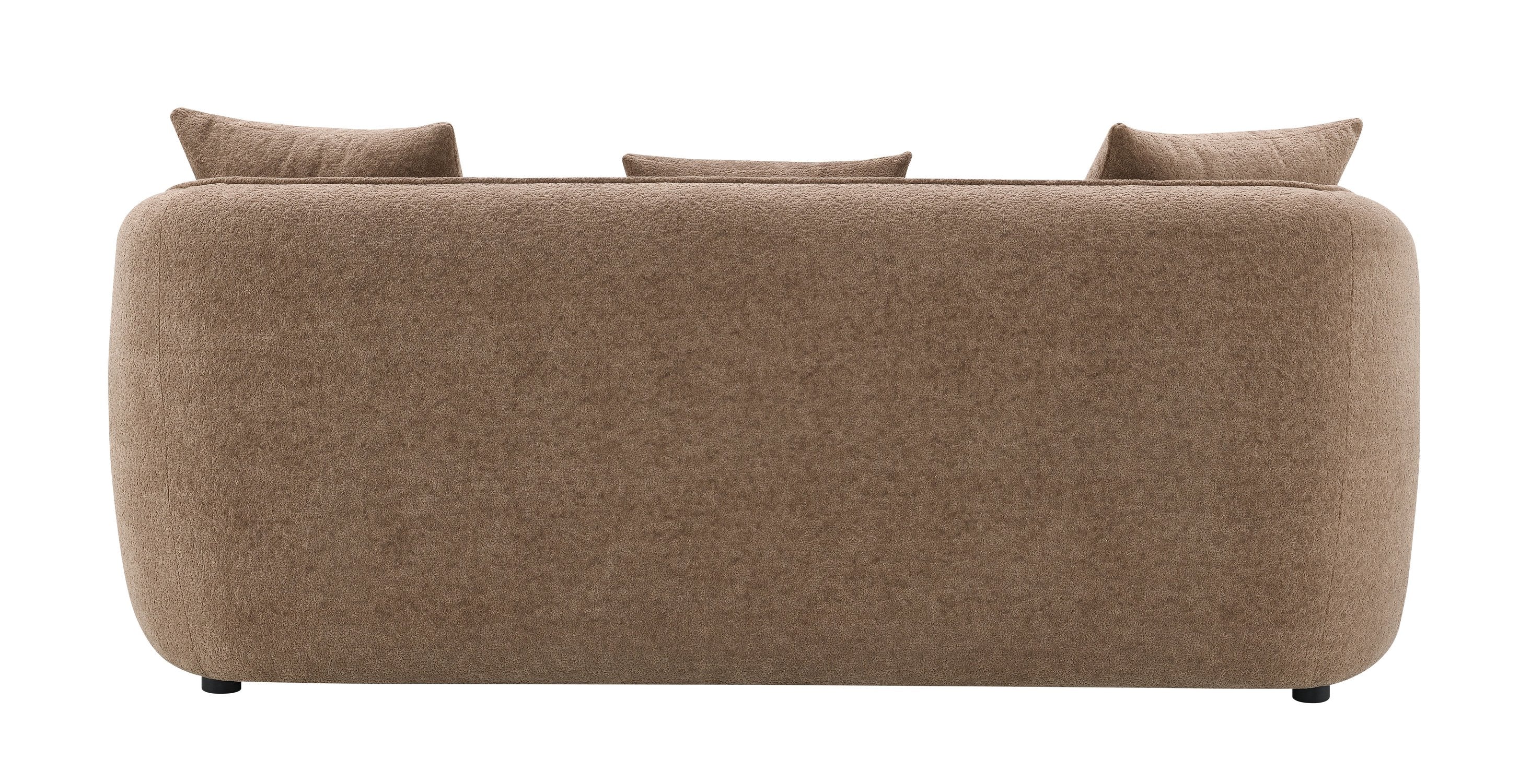 Bring warmth and refined comfort to your living room with this Keith brown chenille sofa, thoughtfully designed for everyday use and stylish entertaining. Upholstered in plush brown chenille, it combines soft texture, supportive construction, and a clean silhouette—complete with three matching toss pillows—to create a welcoming focal point that fits a variety of décor styles.