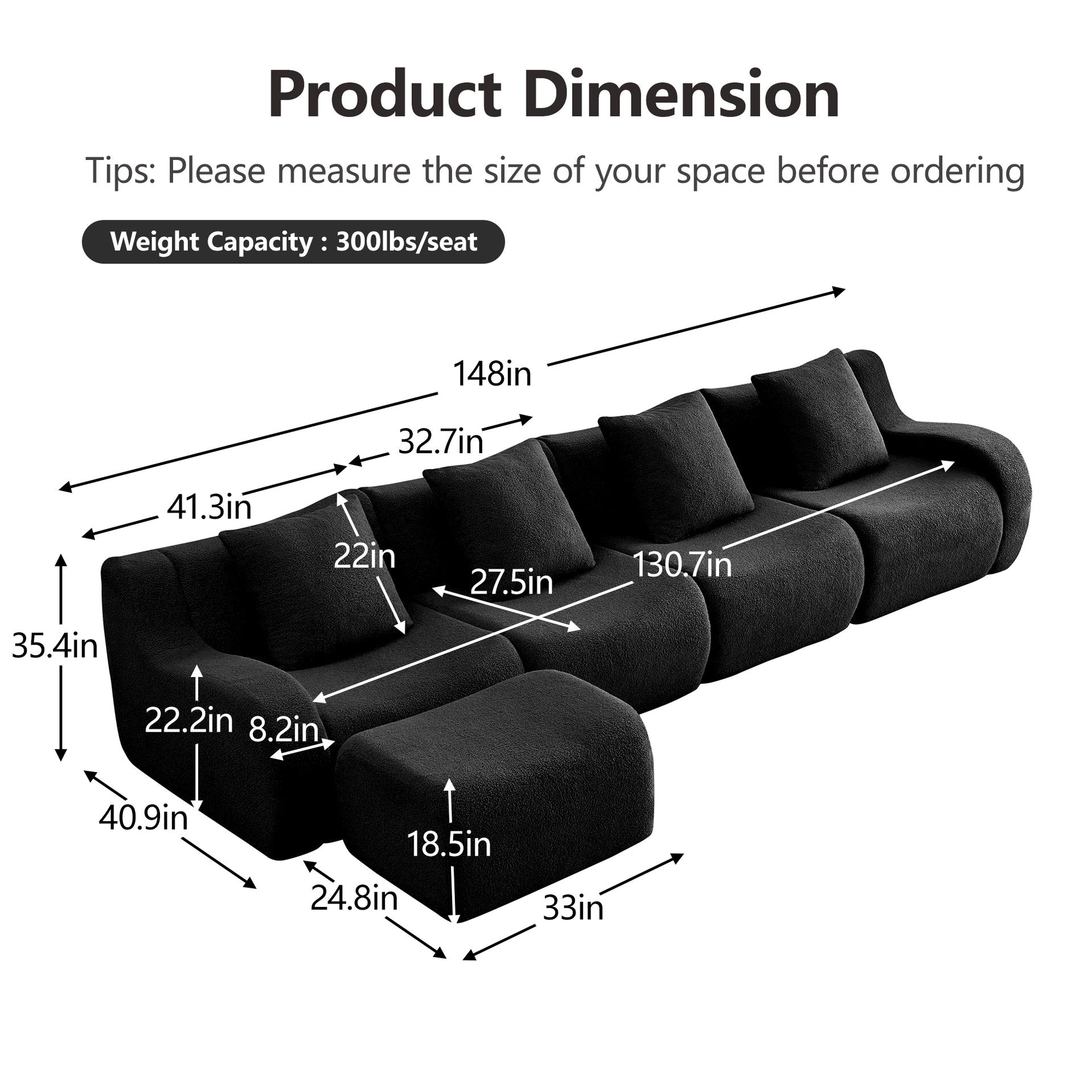 - No Assembly Required: Our modular sofa eliminates the hassle of complicated furniture setup – it's ready to arrange right out of the box. Simply unpack all components and gently pat each module to activate its elasticity, restoring its beautiful shape.