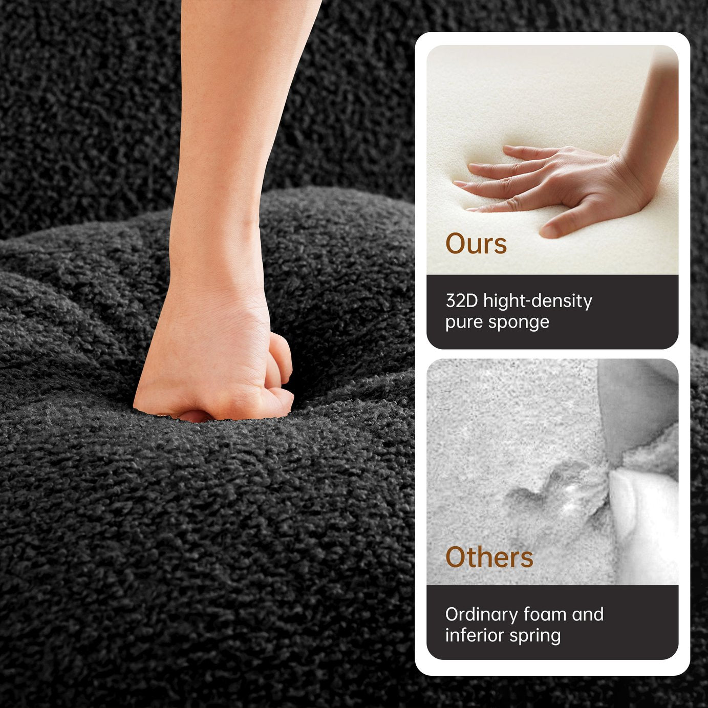 - Ergonomic Design: This sofa boasts an ergonomic curved design. Its seat, filled with 32D High Density Sponge (quick rebound, durable), pairs with skin-friendly breathable Teddy fabric for cloud-like comfort. The widened, thickened seat depth and linked curved footrest extend leg support naturally, easing long-sitting fatigue and turning every lean into deep physical and mental relaxation.