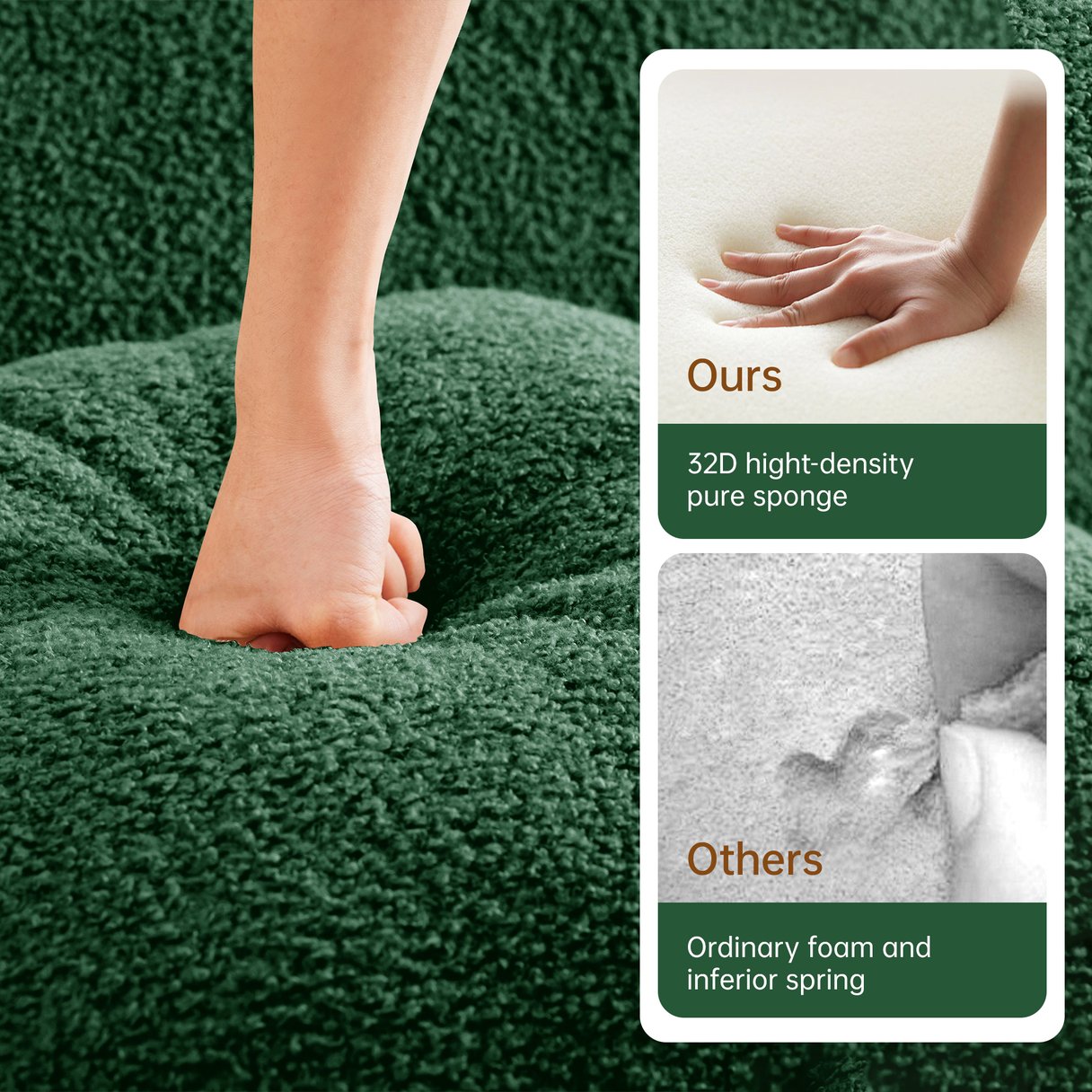 - Ergonomic Design: This sofa boasts an ergonomic curved design. Its seat, filled with 32D High Density Sponge (quick rebound, durable), pairs with skin-friendly breathable Teddy fabric for cloud-like comfort. The widened, thickened seat depth and linked curved footrest extend leg support naturally, easing long-sitting fatigue and turning every lean into deep physical and mental relaxation.