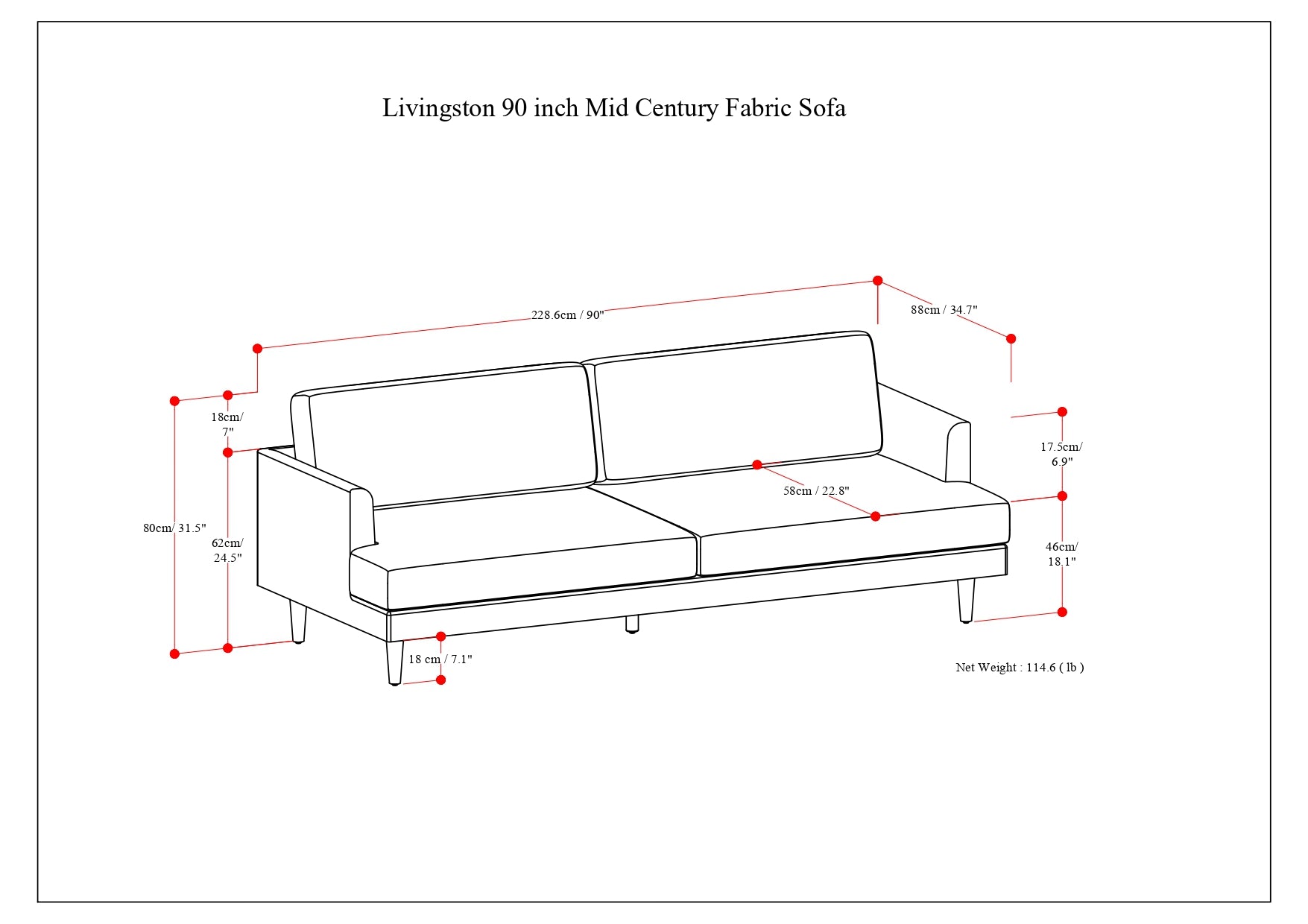 - Measuring 90-inches wide and able to accommodate up to 900 lbs, this handcrafted, mid-century modern sofa is oversized to offer comfortable seating for 3 people.