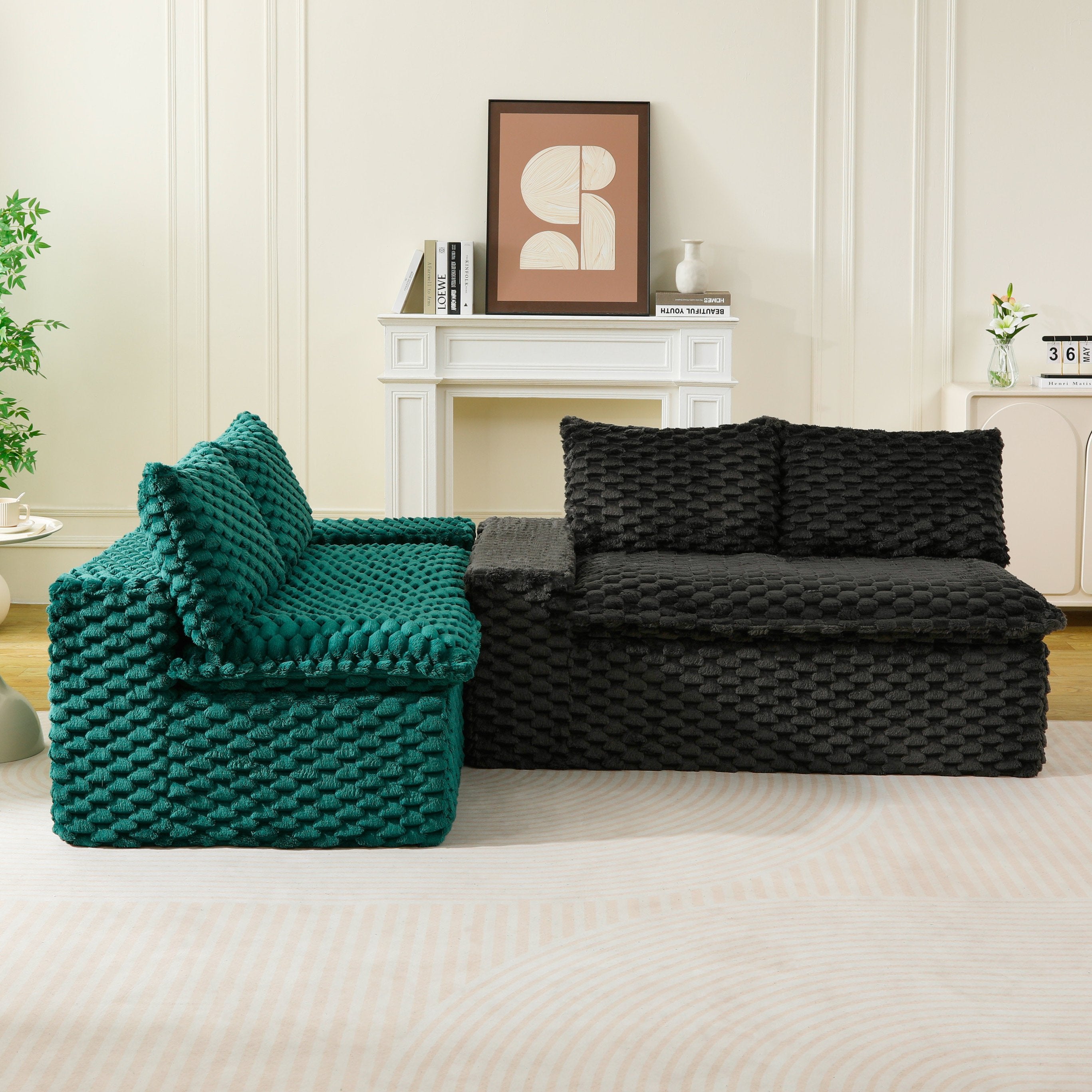 - Made of high-quality color-block turtle velvet (soft & skin-friendly), this multifunctional sofa supports flexible arrangements (single-row/side-by-side/facing each other) for living rooms/small spaces; comfortably fits 4 people.