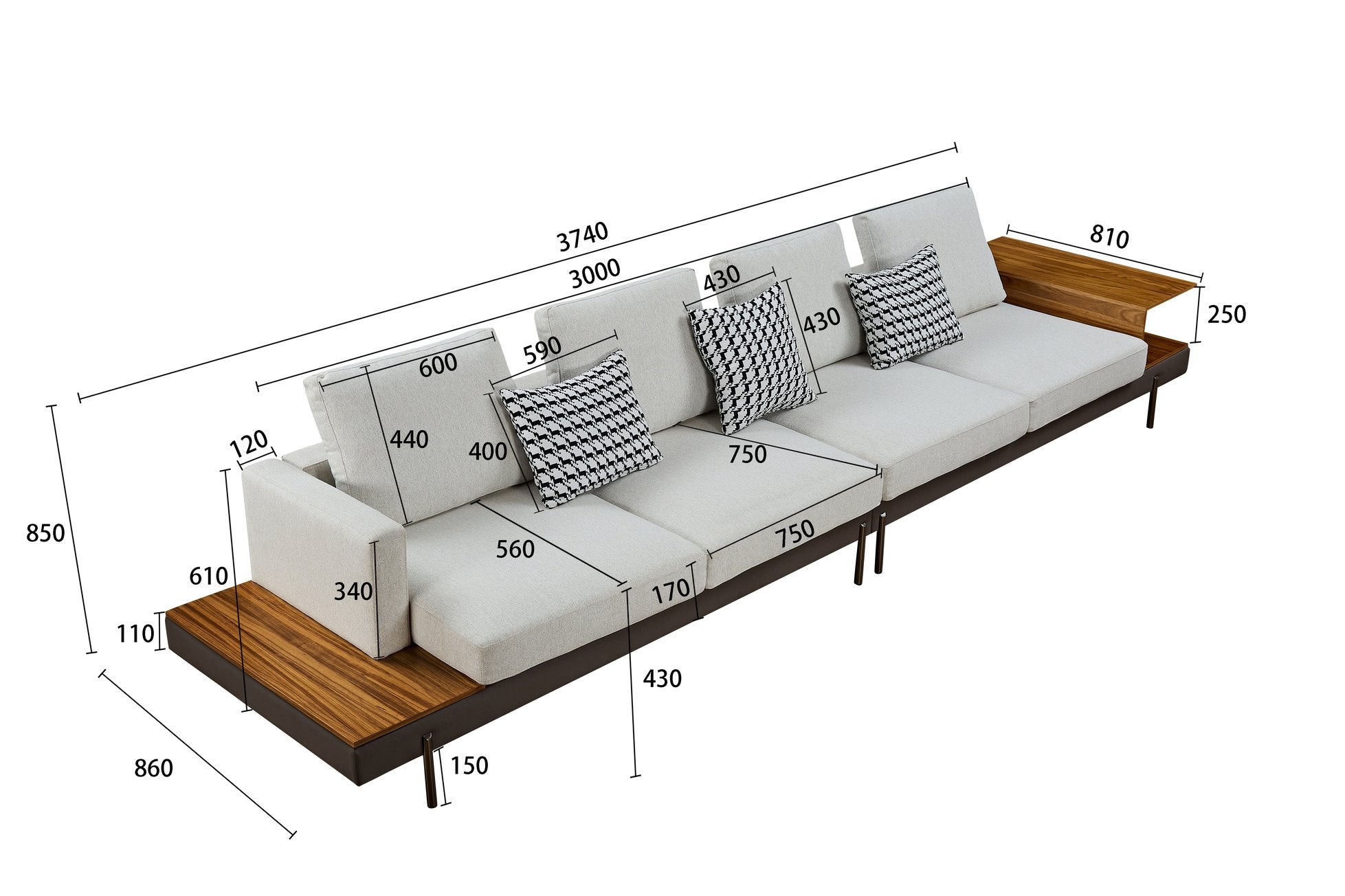 - Elegant and Versatile Design: this sofa is upholstered in comfortable cotton, classic and eco-friendly, with simple black legs for a modern feel. The armrests not only add to its refined style, but also add a shelf on the left and right, blending function and aesthetics.
