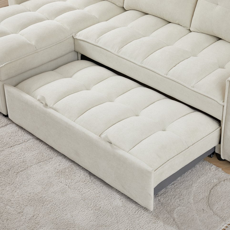 - ✔ STORAGE SPACE: The sleeper sofa has a hidden storage space underneath the chaise area and side storage pockets that provide an extra area for blankets, pillows, magazines, remotes or other items. This remarkable feature makes it an exceptional choice for those with limited storage space in their home.