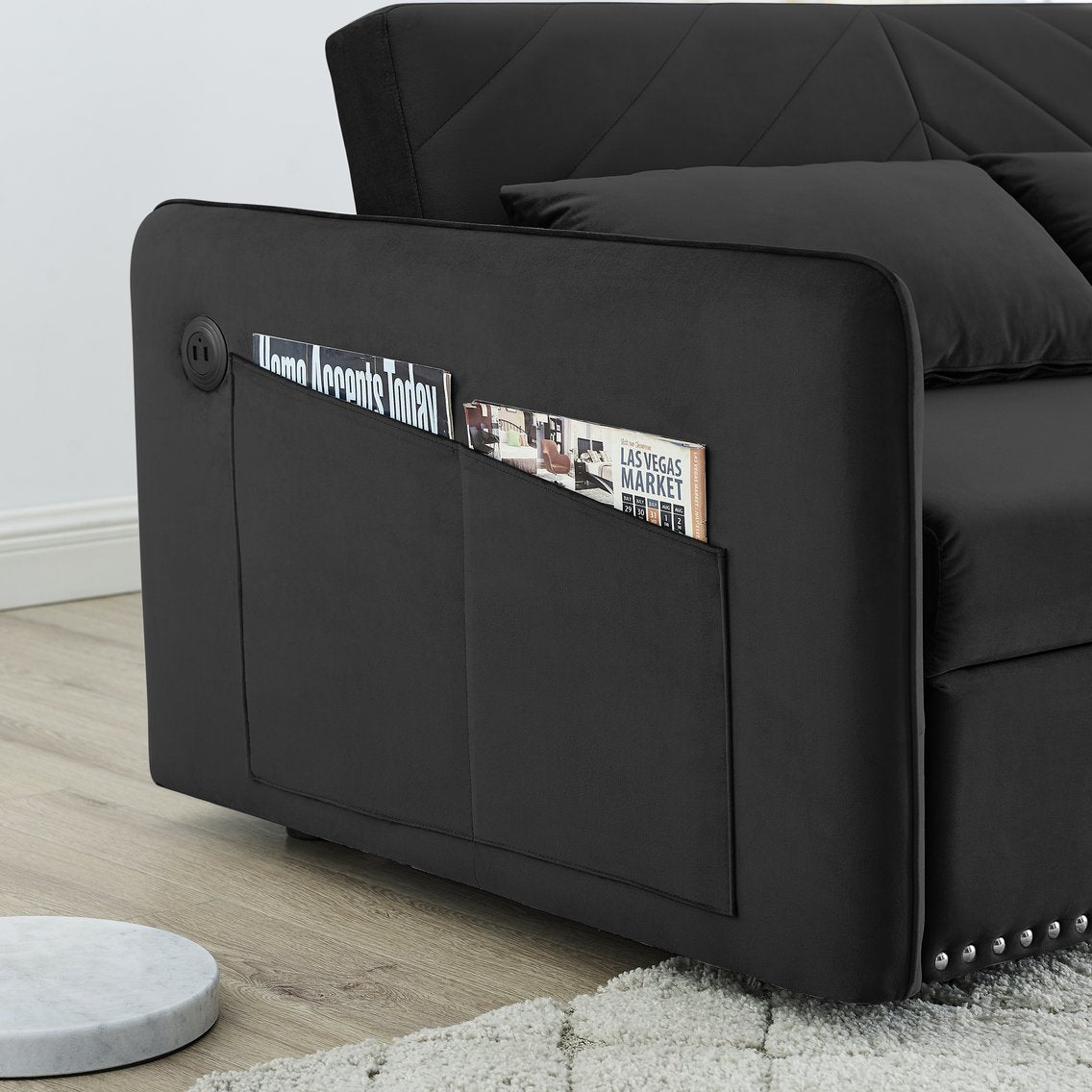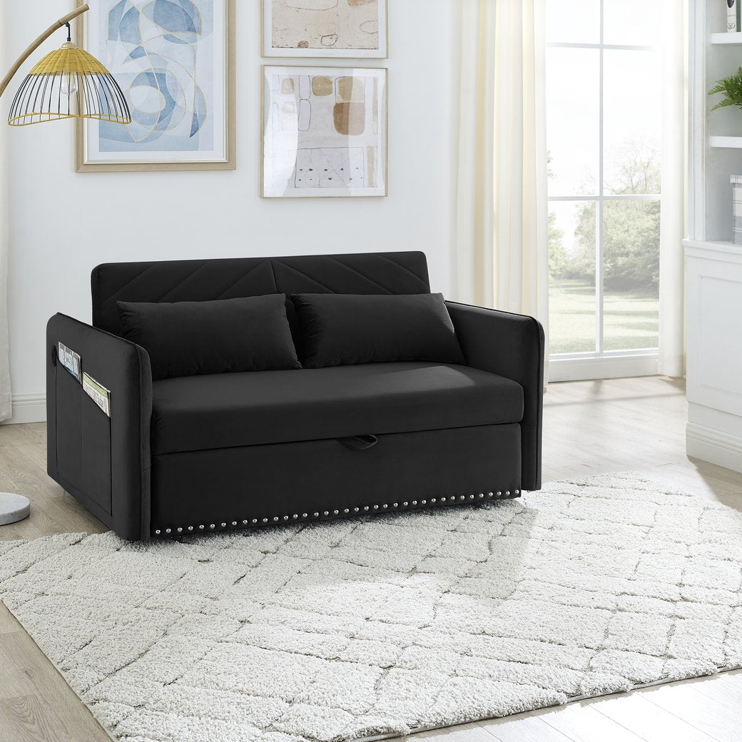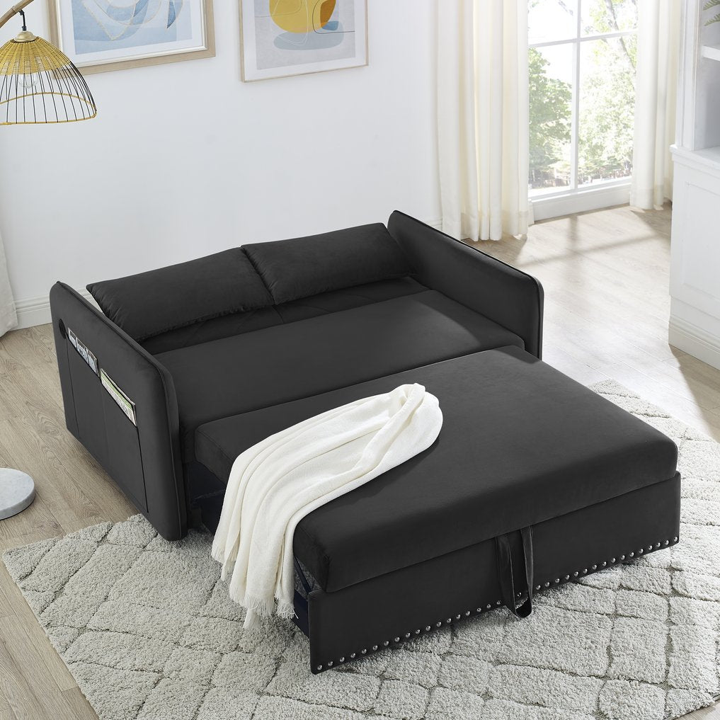 Transform any room into a comfortable, stylish retreat with this versatile 3-in-1 velvet sleeper sofa. Designed for everyday living and occasional overnight guests, it blends plush comfort, modern aesthetics, and practical features—like a USB charging port and side storage pocket—into a space-saving package that’s ideal for apartments, home offices, or guest rooms.