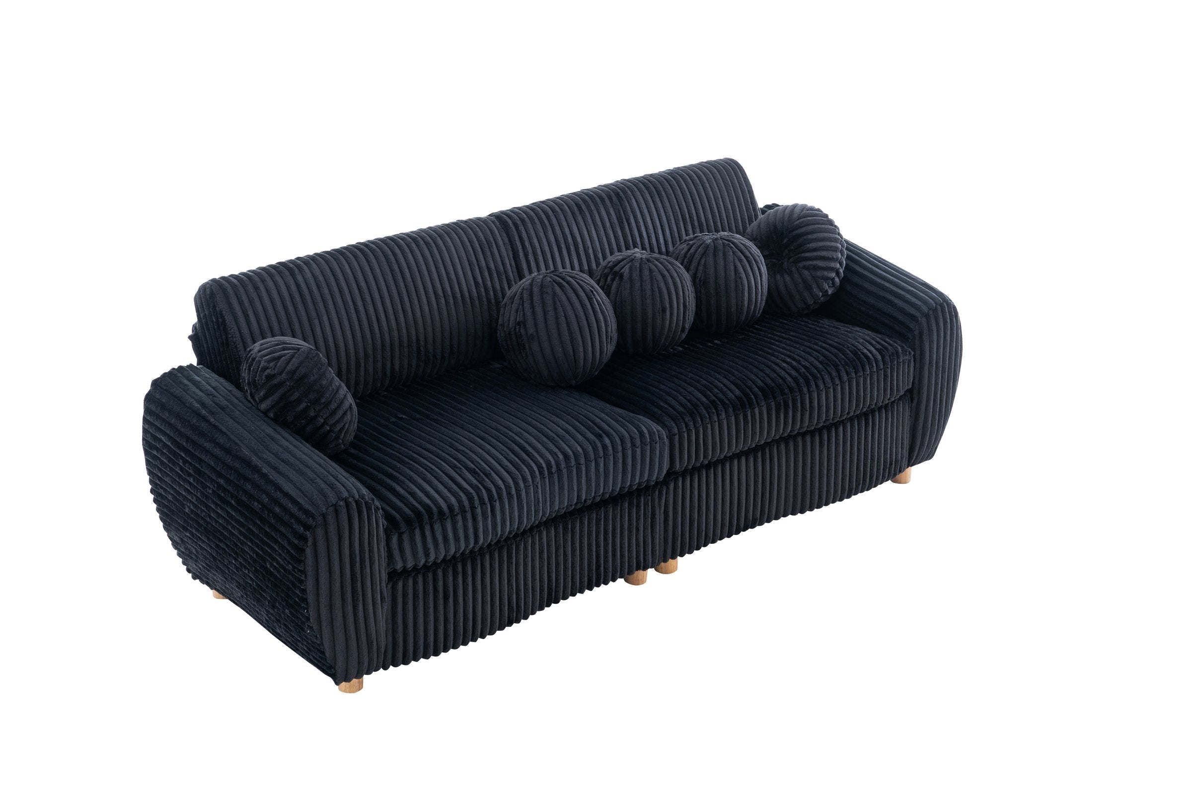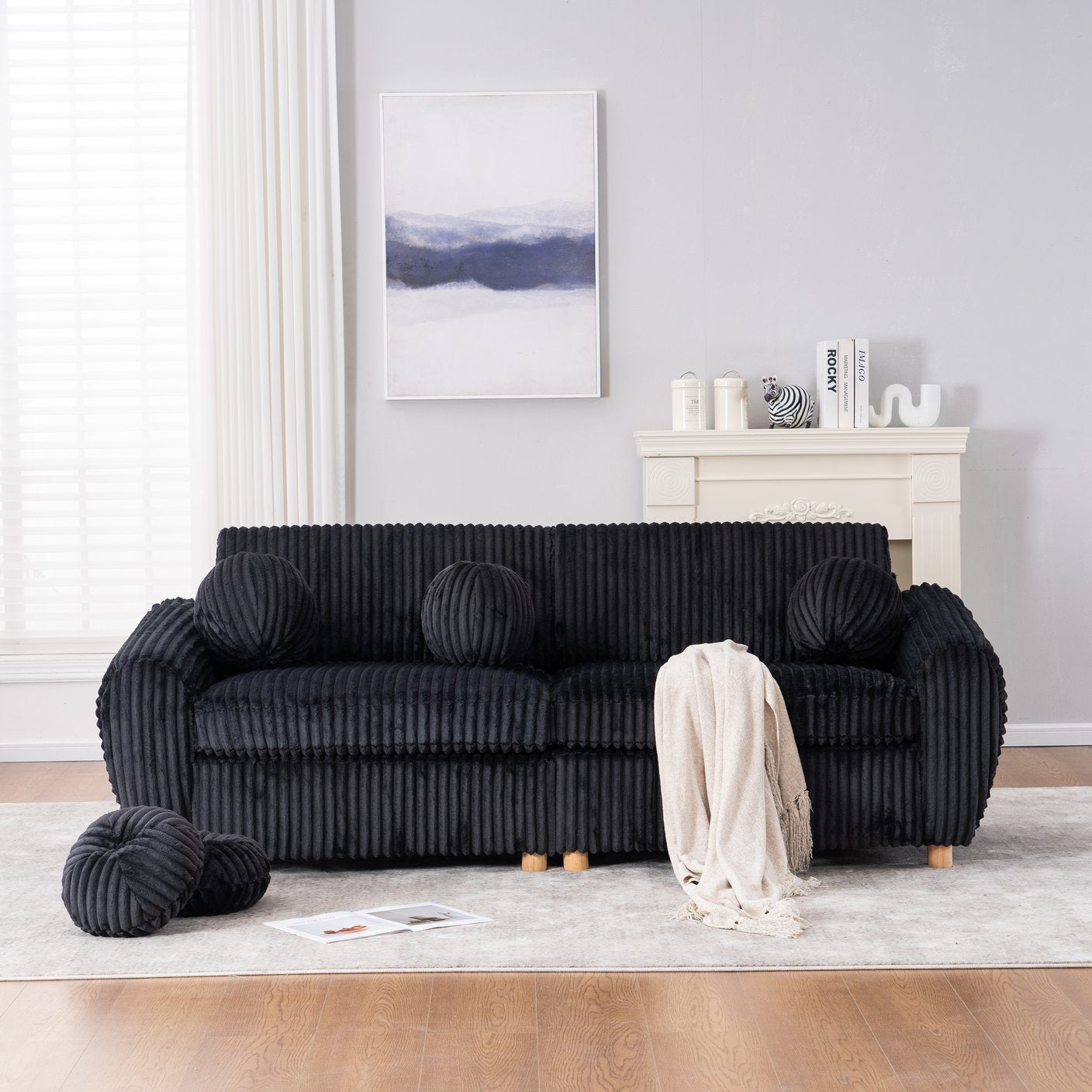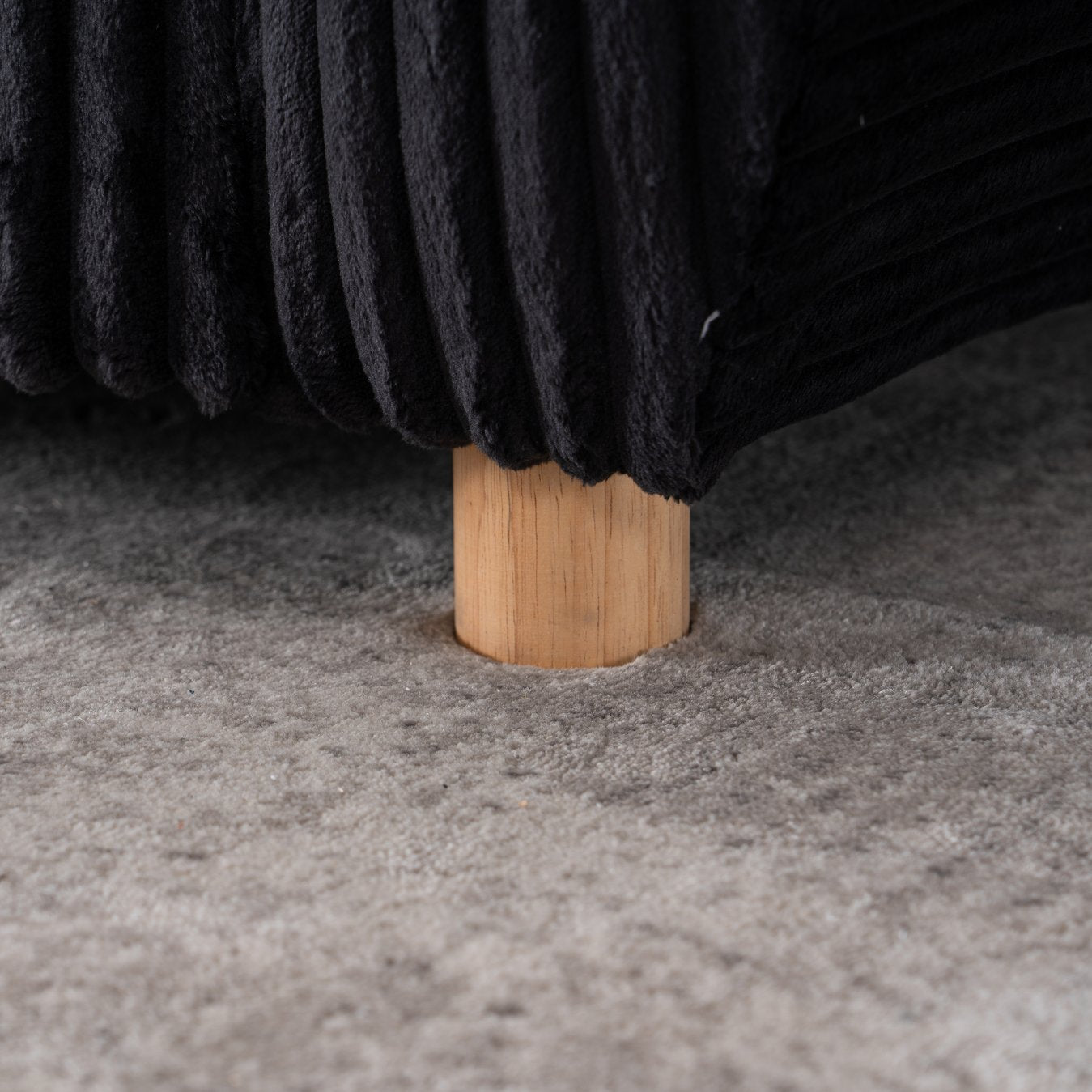 Bring modern comfort and tailored style into your living space with this sleek black corduroy upholstered sofa. Designed for contemporary homes, apartments, and home offices, it combines plush seating, durable construction, and a compact sectional profile that fits both open living rooms and cozy bedrooms. The soft corduroy fabric offers a luxurious feel while the solid/manufactured wood frame and wooden legs ensure lasting stability.