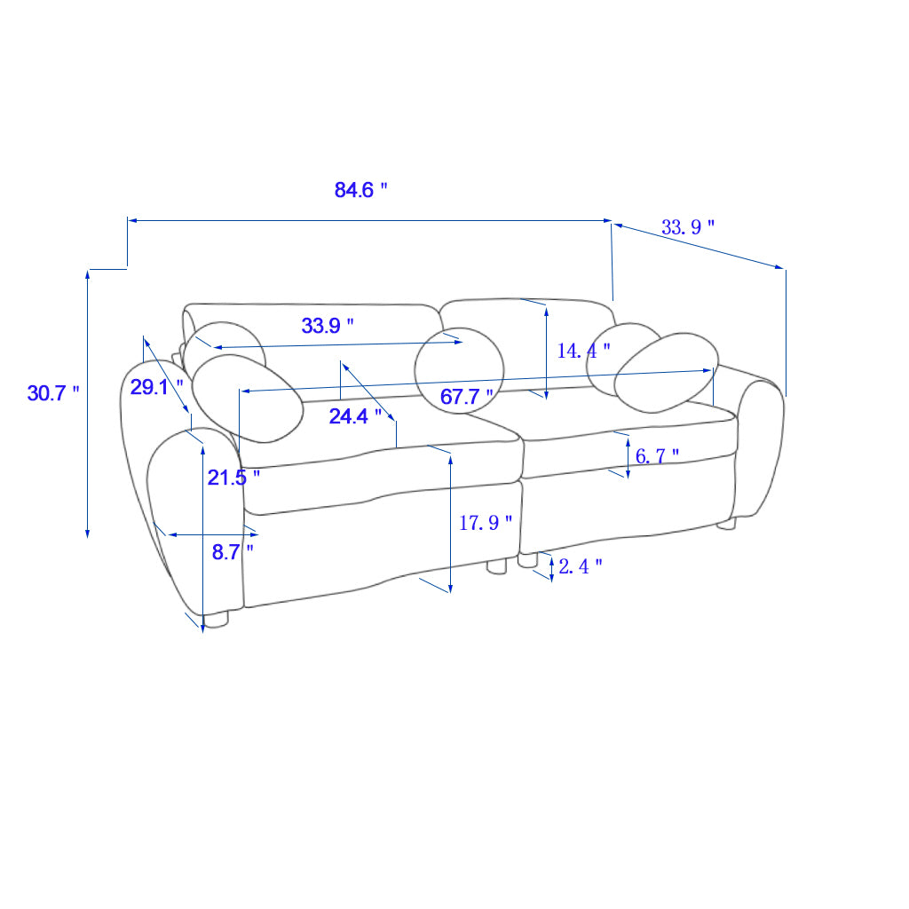 - Overall Dimensions: 84.6" W x 33.9" D x 30.7" H