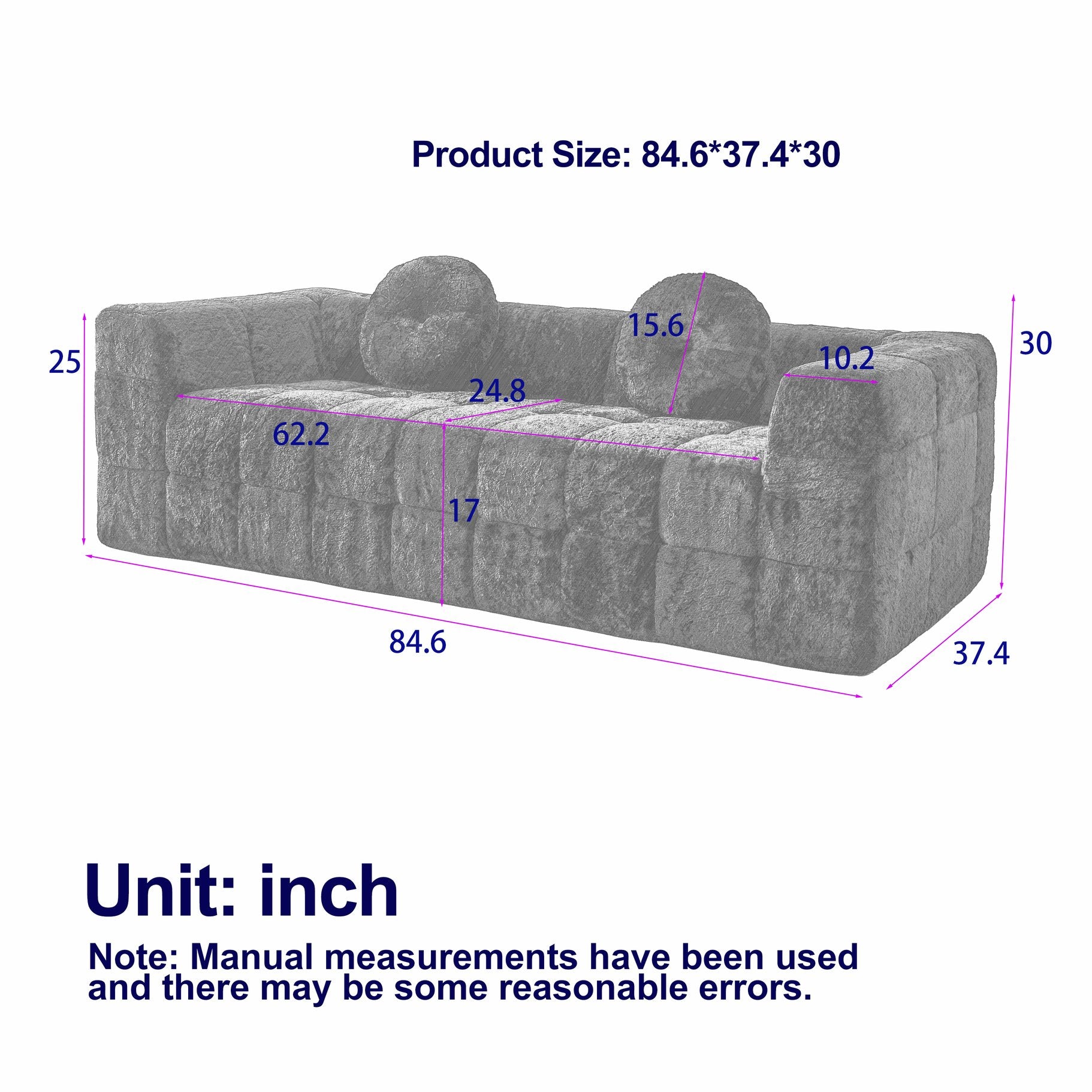 Sink into modern comfort with this boneless, cloud-like couch designed for effortless relaxation and contemporary style. Upholstered in skin-friendly, lychee-textured long-pile polyester and accented with two circular throw pillows, this compact sofa brings plush support and refined minimalism to small living rooms, bedrooms, or lounge areas. Easy to set up and low maintenance, it’s a cozy, stylish focal point that adapts to everyday life.