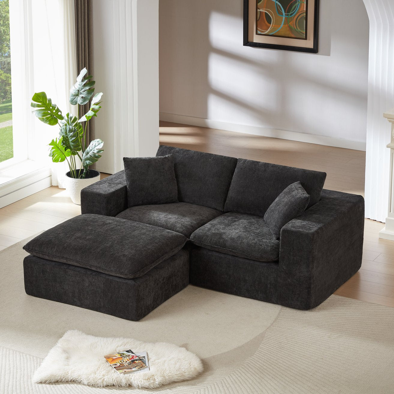 Create a cozy, contemporary focal point for your living room, apartment, or office with this Modern Chenille cloud sofa. Upholstered in soft, durable chenille and filled with high-density sponge particles, the sofa combines a cloud‑inspired silhouette with modular flexibility for comfortable seating, easy customization, and lasting use.
