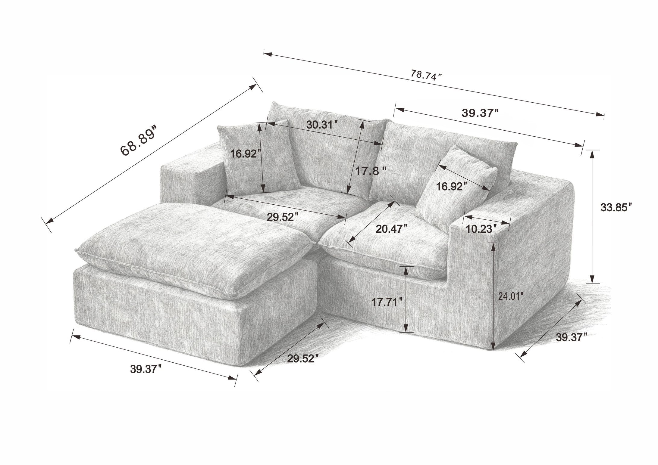 - Assembled Width(inch): 39.37