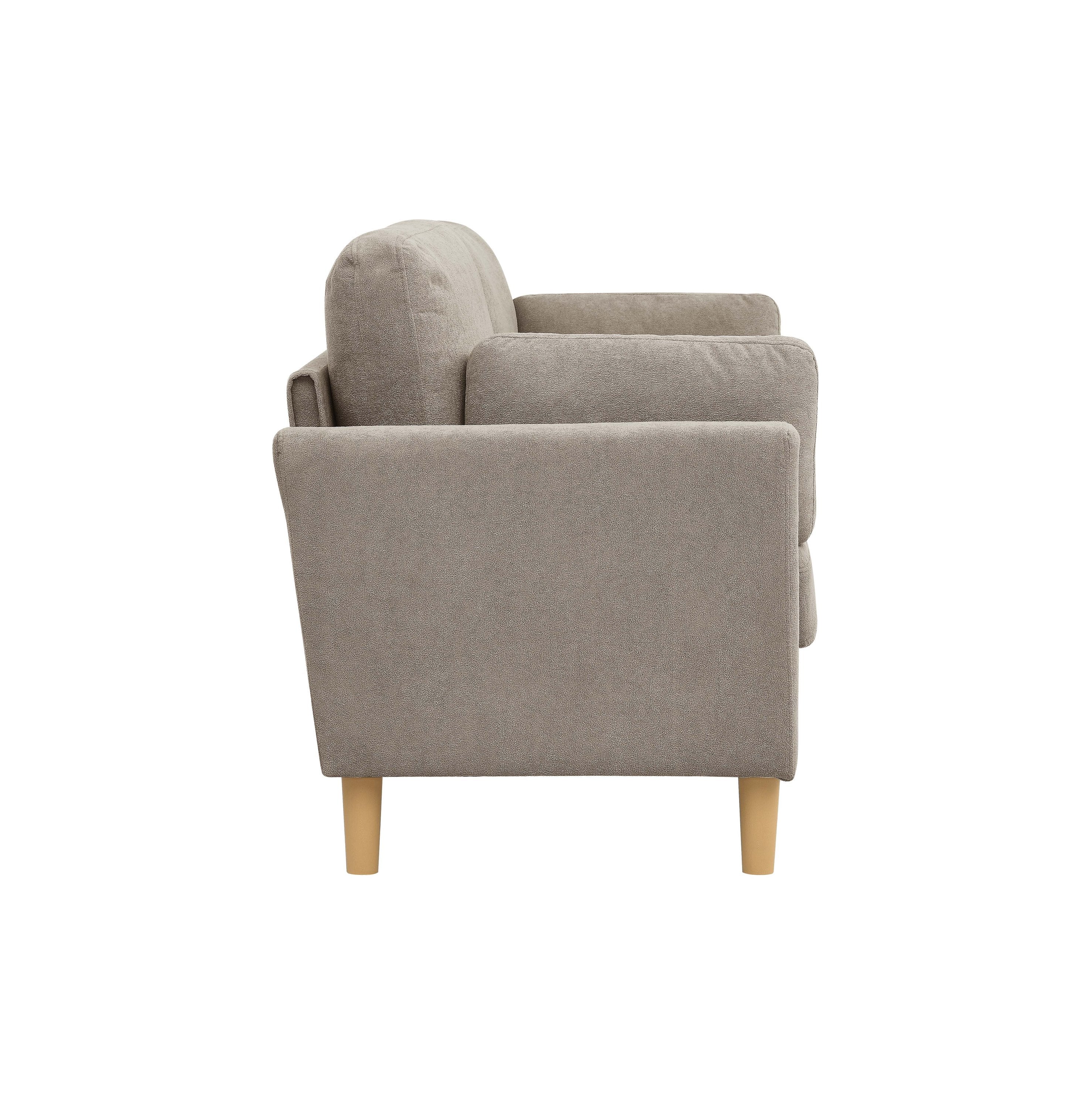 - Featuring clean lines, soft neutral upholstery, and a compact design, this sofa effortlessly blends style and comfort.