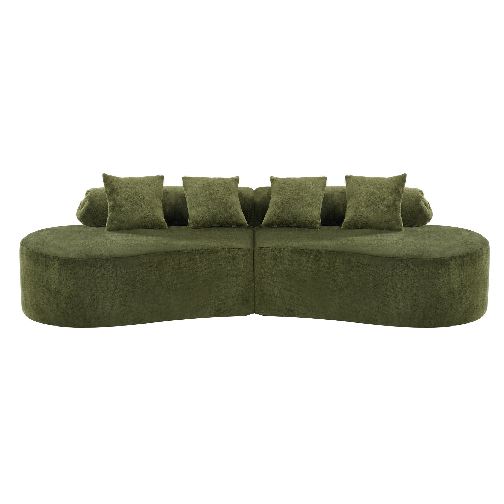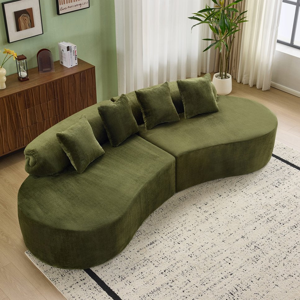 - The dark green high - density plush curved sofa features a modular design, fitting various spaces. The plush surface is skin - friendly and durable, meeting the needs of multi - person leisure.