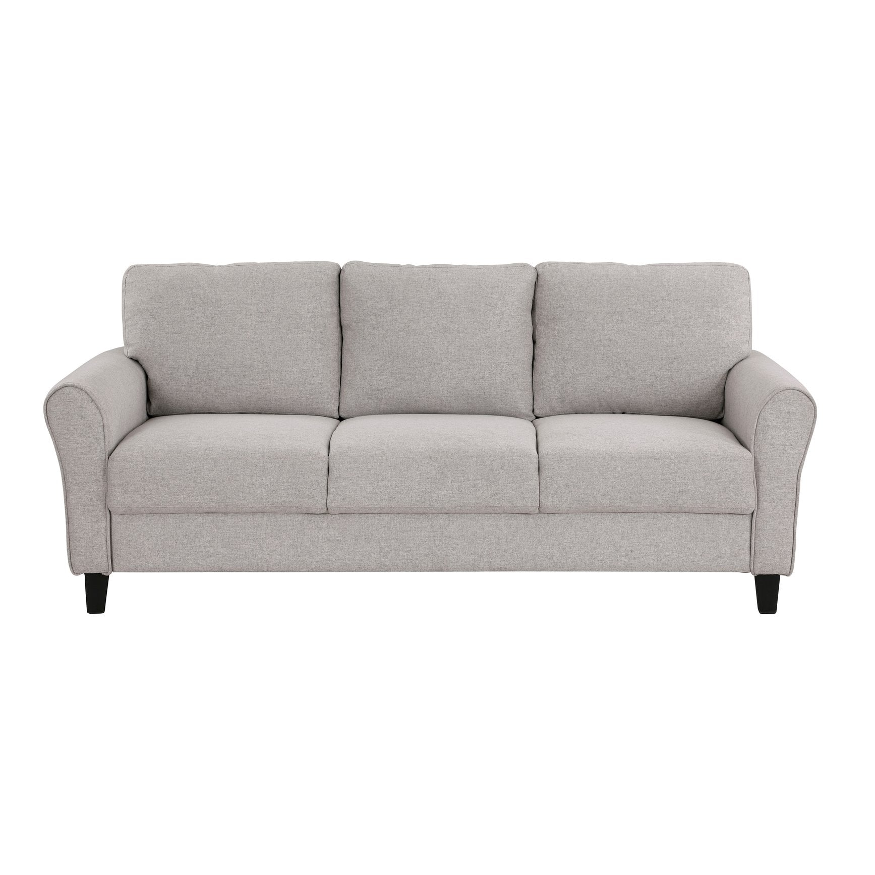 Elevate your living space with the Ellery Collection sofa—an adaptable, refined piece that blends transitional, modern, farmhouse, and traditional influences. Its sand-hued textured upholstery and welt-trimmed rounded arms create a clean, timeless silhouette that complements a variety of décor styles. Designed for everyday comfort, the sofa features attached cushions and supportive seating that balance form and function.