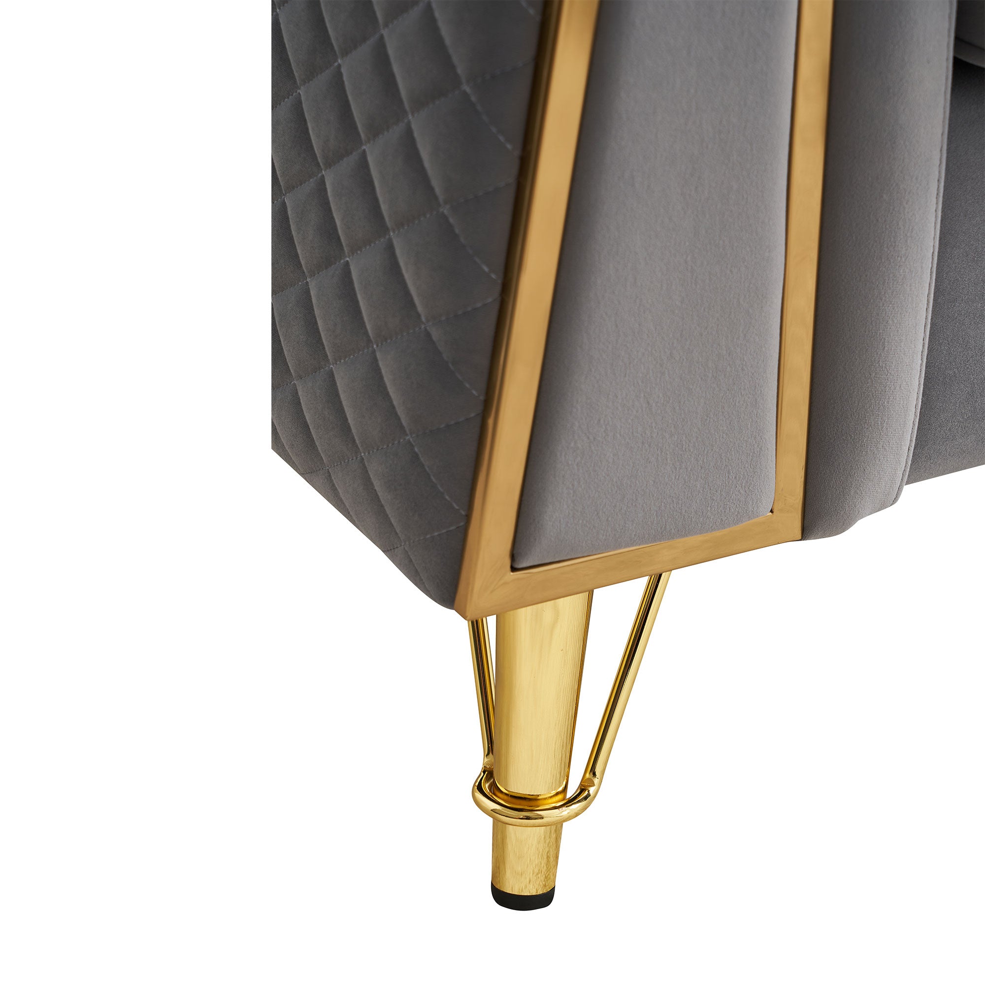 - Distinctive Accents: Flared arms with a gold metal frame and fabric-wrapped outer arm panels for a unique, upscale appearance.