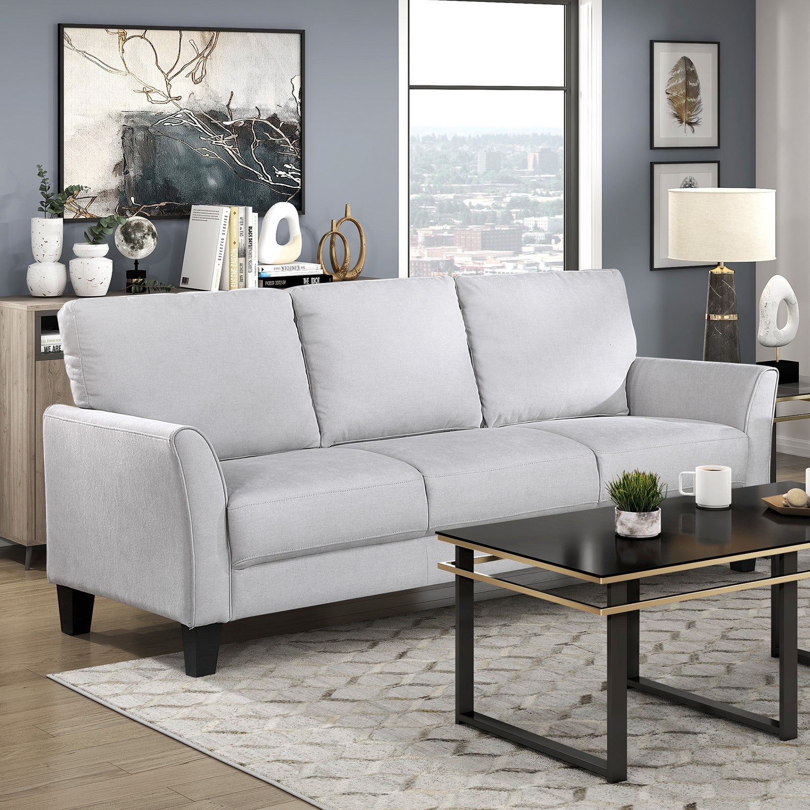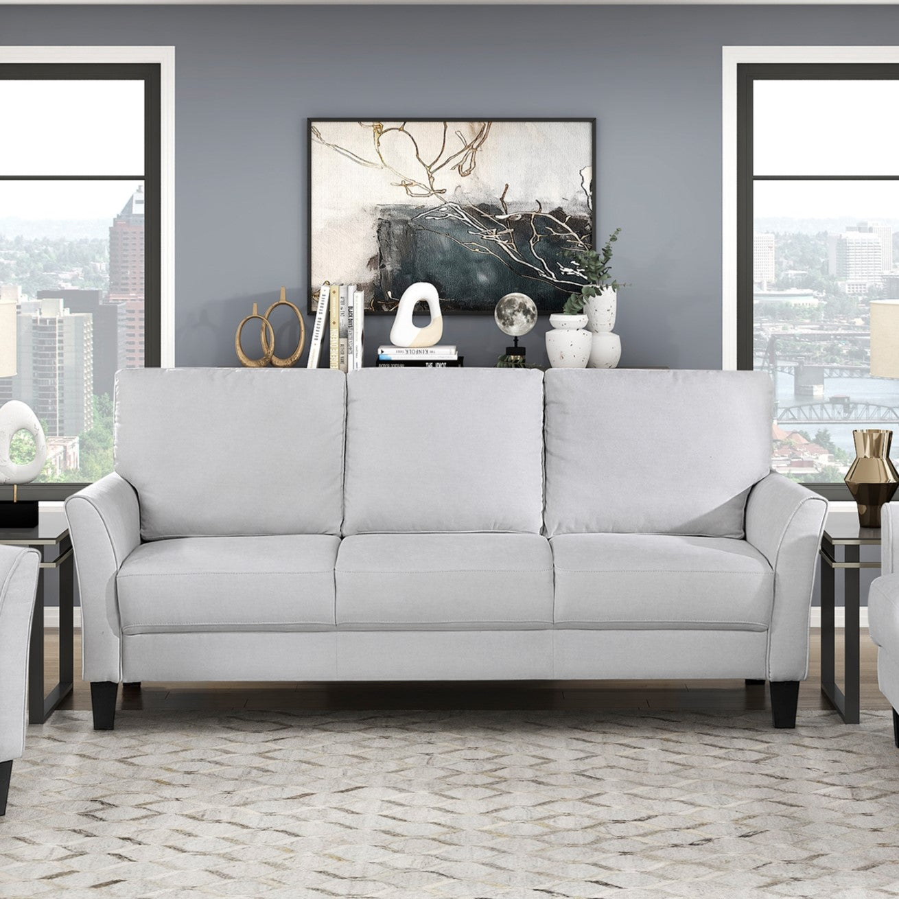 Elevate your living space with this modern upholstered 3-seater sofa that combines contemporary style, plush comfort, and durable construction. Its clean silhouette, slightly flared arms, and soft fabric upholstery create an inviting focal point for living rooms, apartments, or offices—while a sturdy solid-wood frame and tapered legs provide reliable support for everyday use.