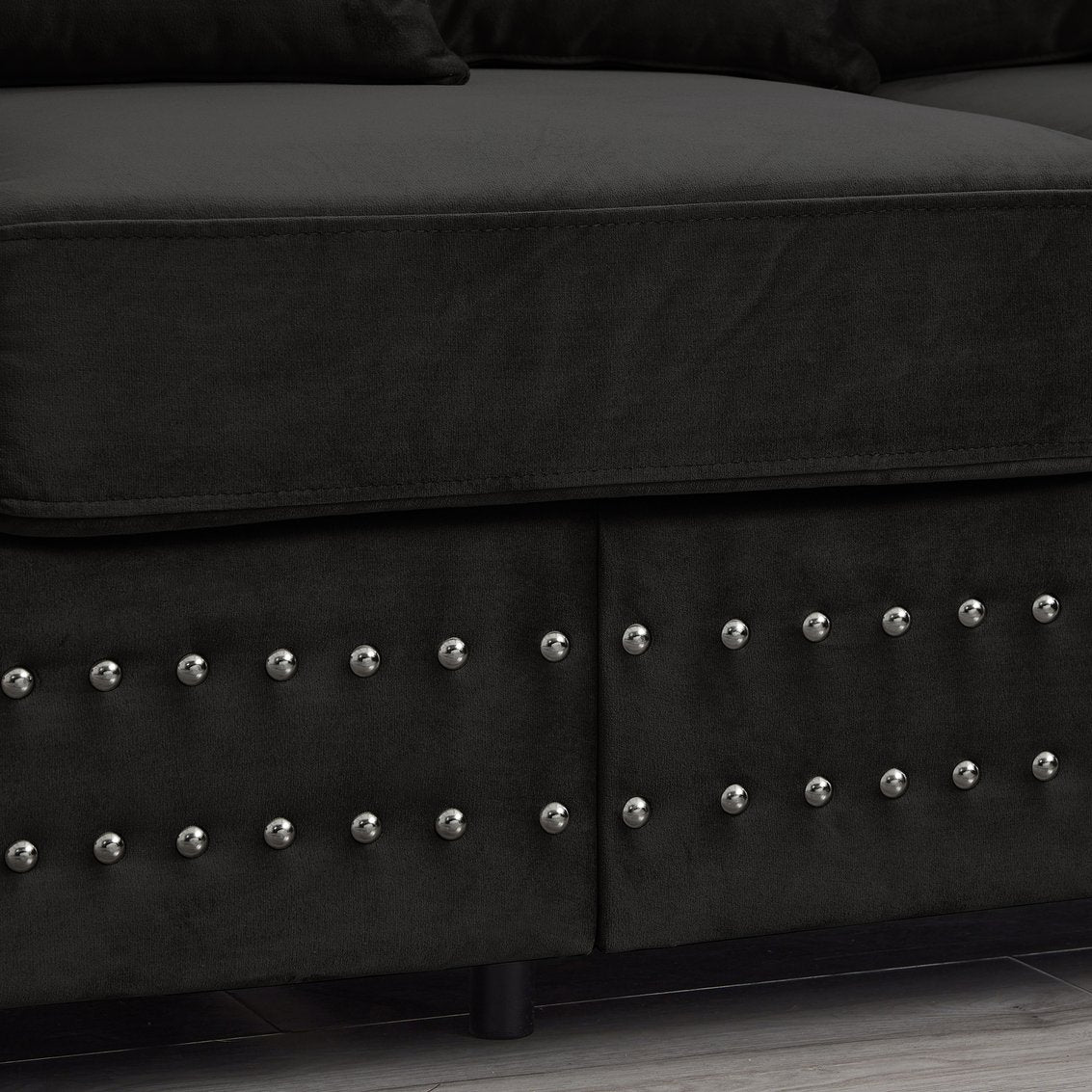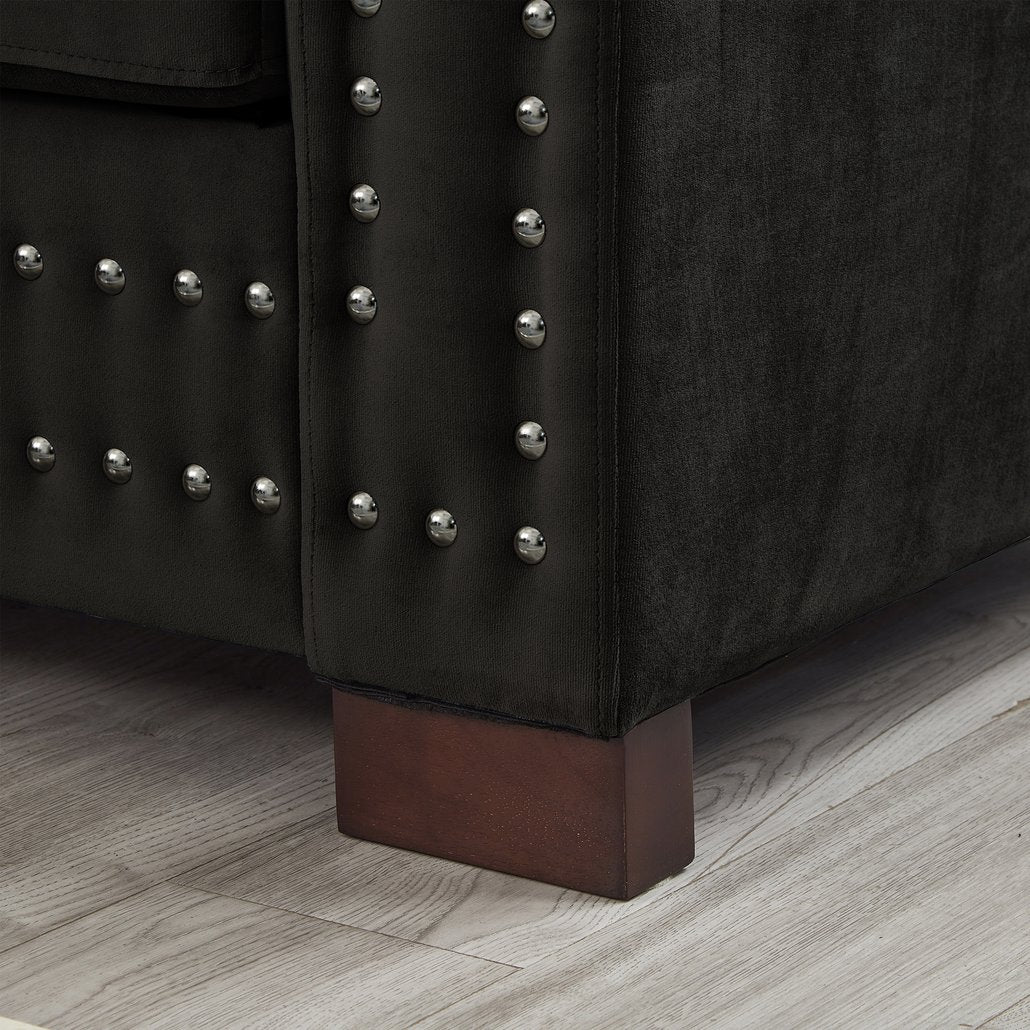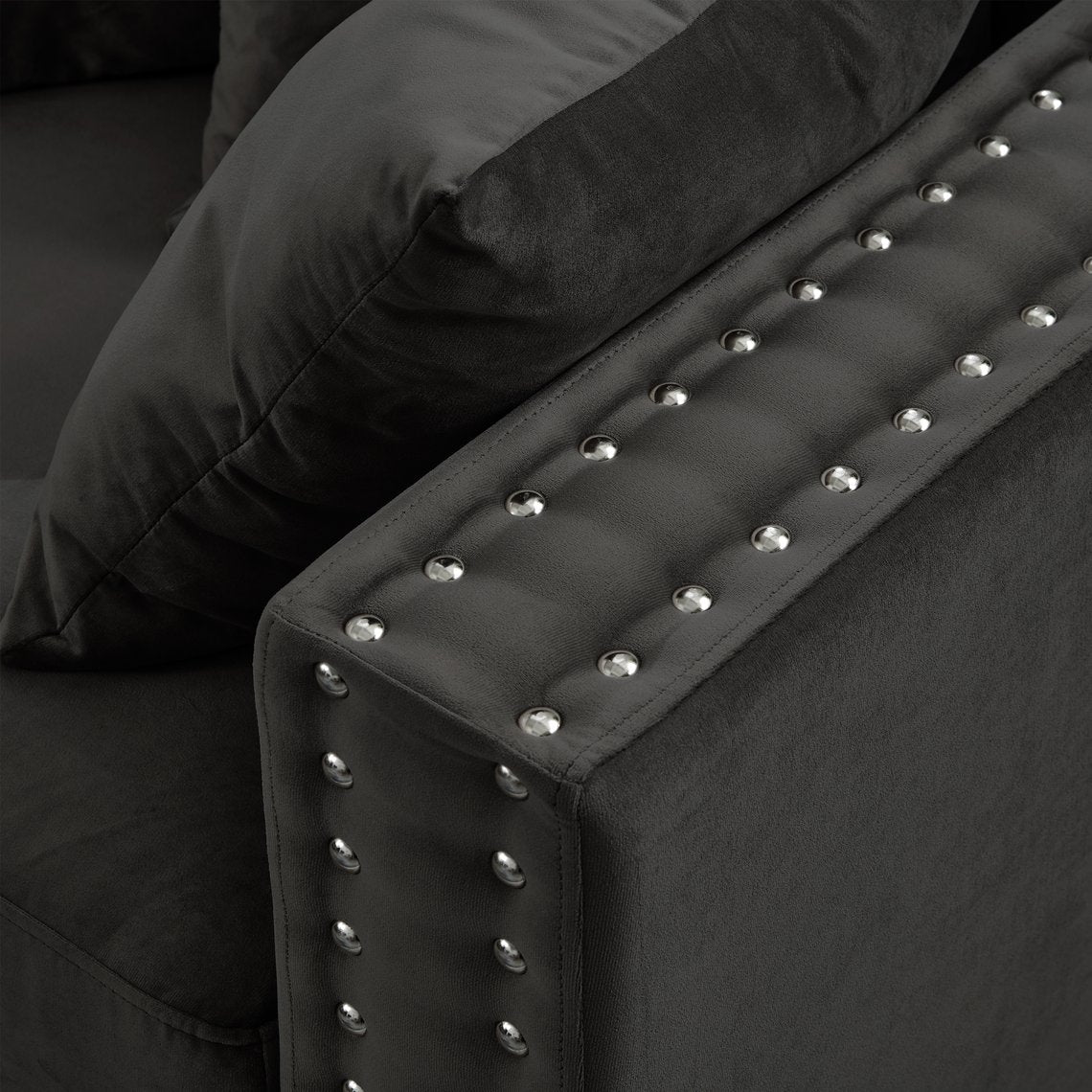 - Upholstery & Finish: Luxurious black velvet upholstery with decorative silver nailhead trim for a sophisticated, contemporary look.