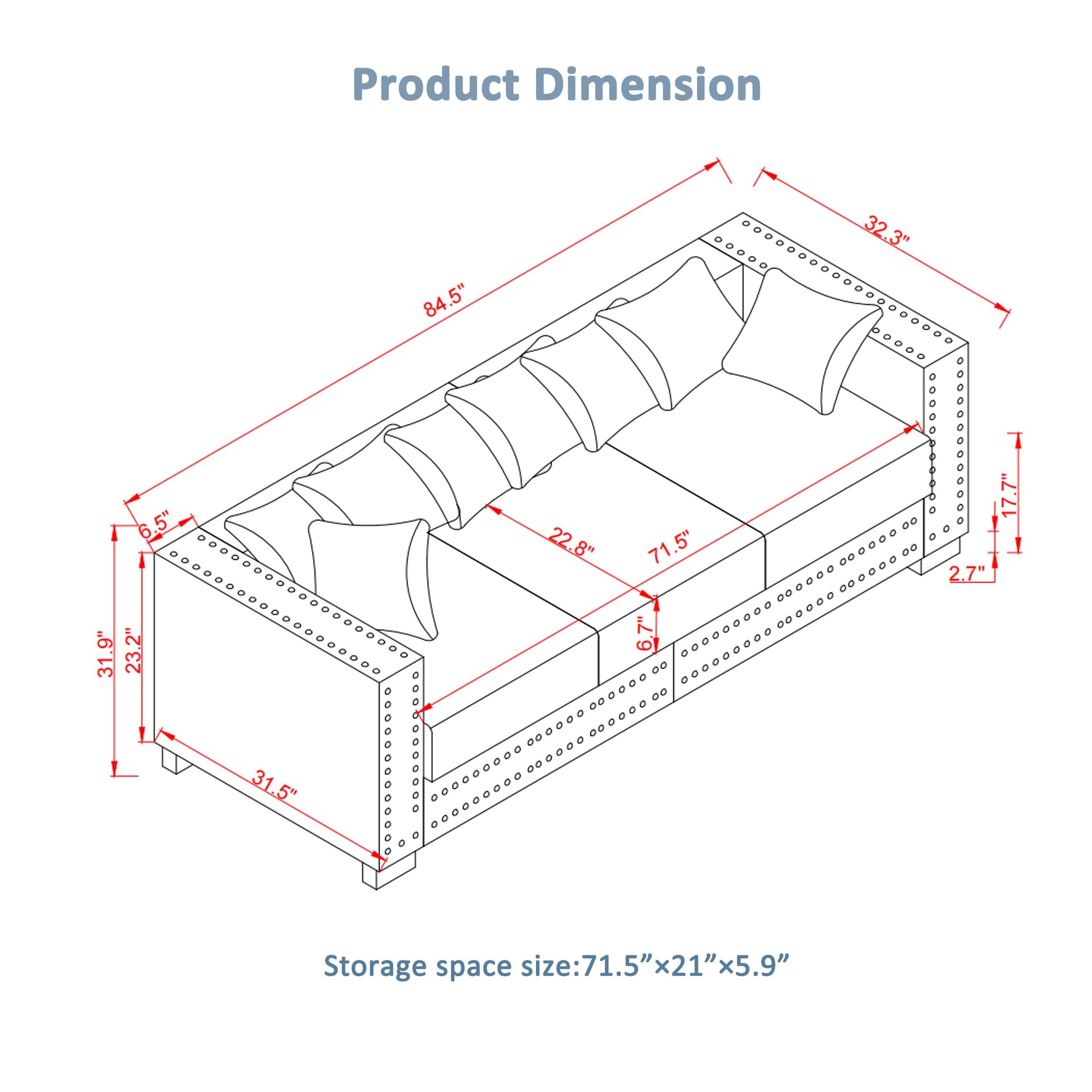 - Overall Dimensions: 84.5" L x 32.3" W x 31.9" H