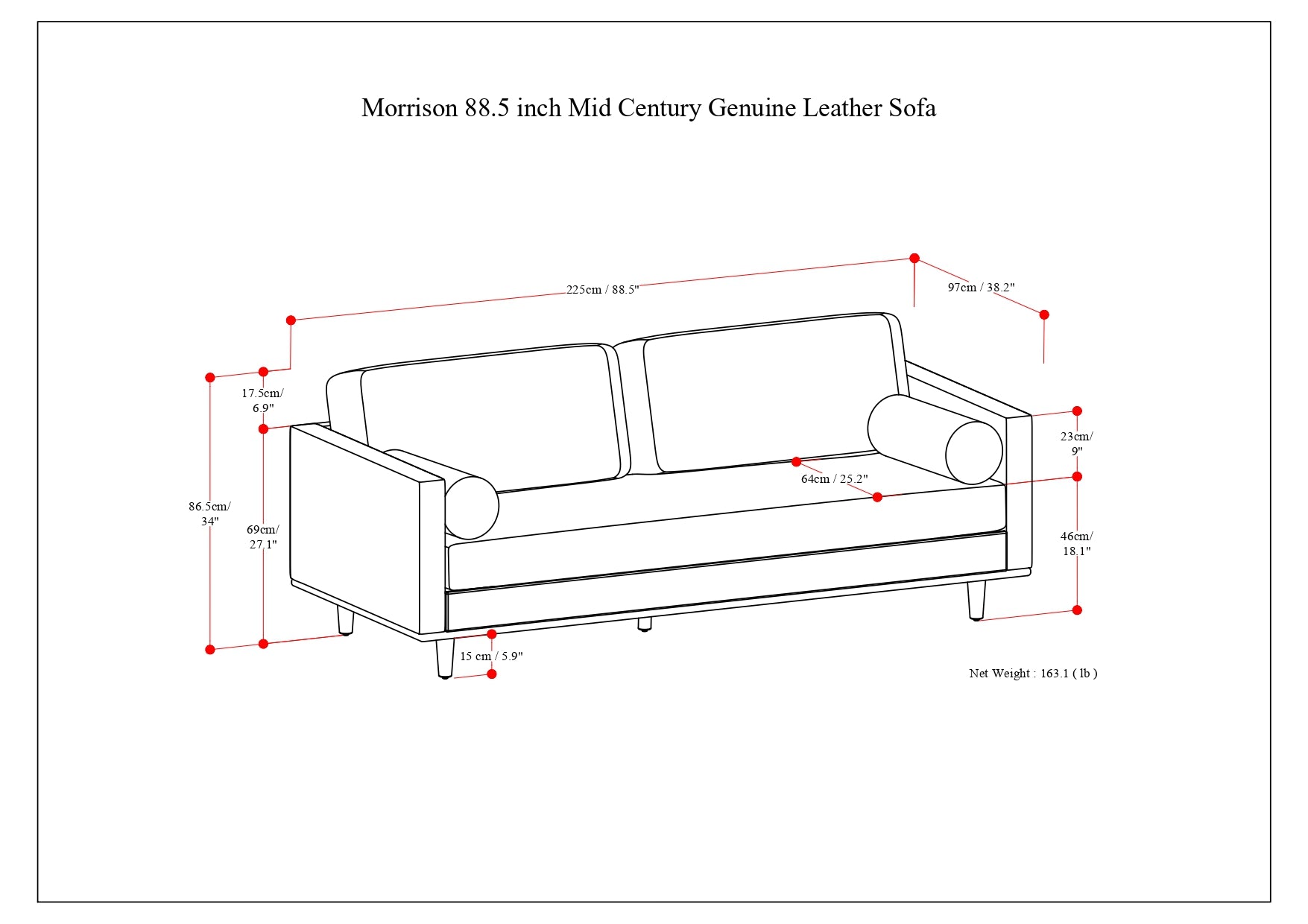 - Measuring 89-inches wide and able to accommodate up to 900 lbs, this handcrafted, mid-century modern sofa is generously sized to offer comfortable seating for 3 people.