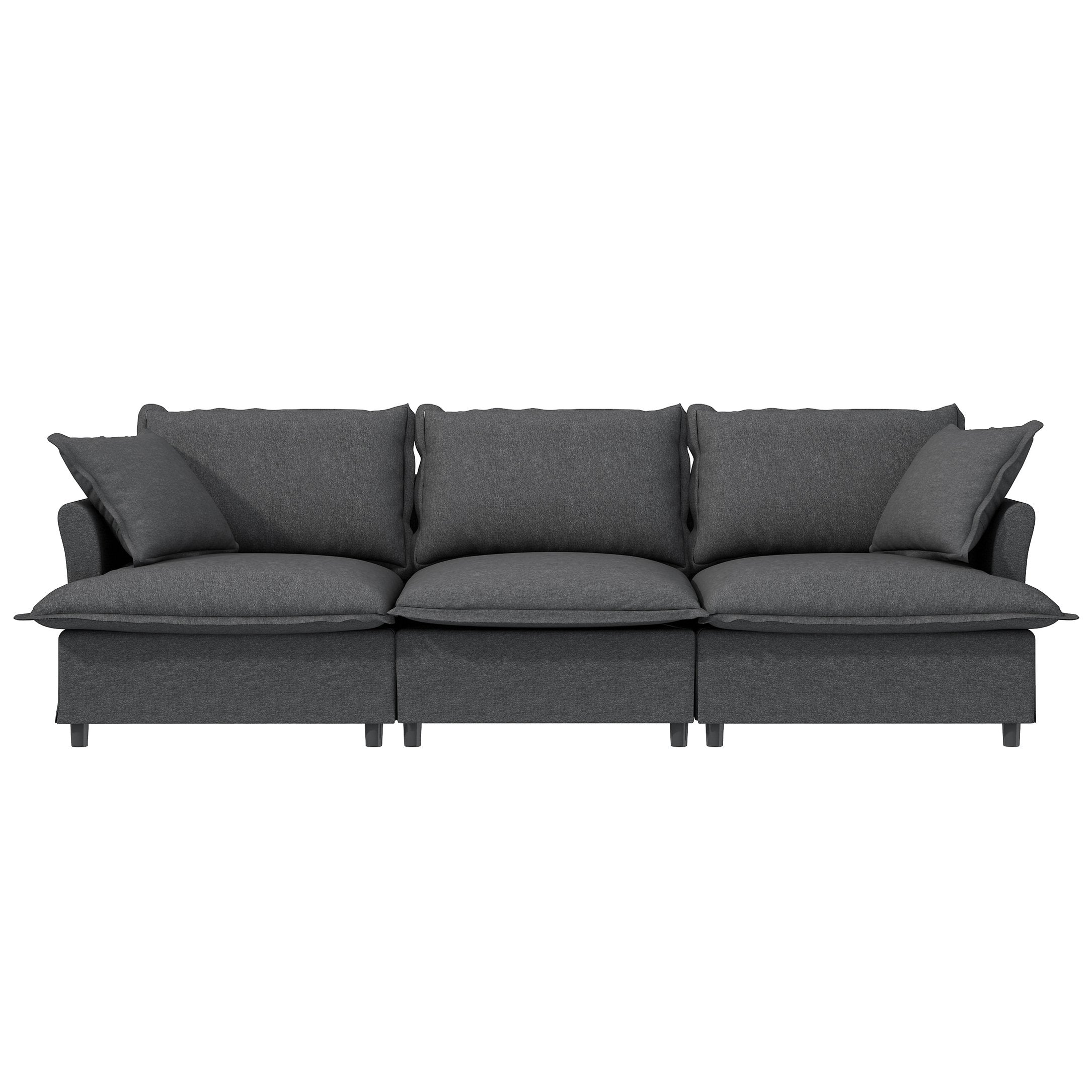 Transform your living space with a versatile, stylish modular sofa designed for comfort and customization. This three-piece chenille cloud couch adapts to your room — configure as a full three-seater, combine with a single seat and ottoman, or expand later by adding modules. Elegant skirted seating and petal-shaped armrests deliver a refined look, while plush foam and pocket-spring seats with PP cotton back fill ensure lasting comfort. Ideal for living rooms, bedrooms, apartments, or any residential setting where flexibility and style matter.