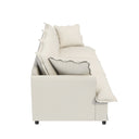 - Elegant and Thoughtful Design: The sofa is designed with sophisticated details that enhance its aesthetic appeal. The seat cushions are adorned with a skirted edge design, giving the sofa a refined, flowing look. The armrests feature a curved, petal-like shape, adding a touch of elegance and softness to the overall form. These design elements contribute to both the comfort and visual appeal of the sofa, making it a stylish addition to any room.