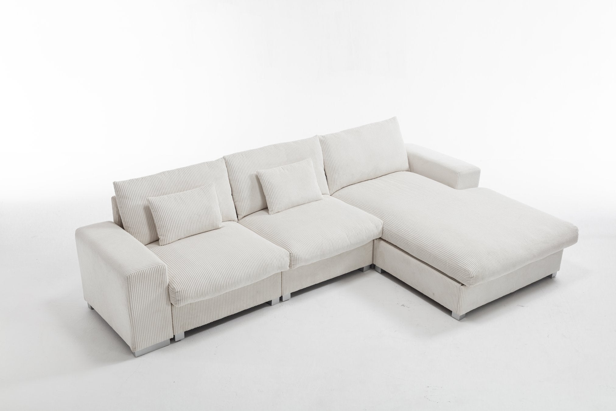 This Nordic-inspired L-shaped sofa combines clean Scandinavian lines with everyday practicality to create a welcoming focal point for modern living rooms. Upholstered in durable white flannel polyester and built on a solid wood frame, it offers generous seating, ergonomic support and a minimalist aesthetic that suits contemporary, Italian-luxury or Nordic décor schemes. Ideal for family gatherings, naps or quiet relaxation, this sofa balances comfort, durability and easy maintenance.