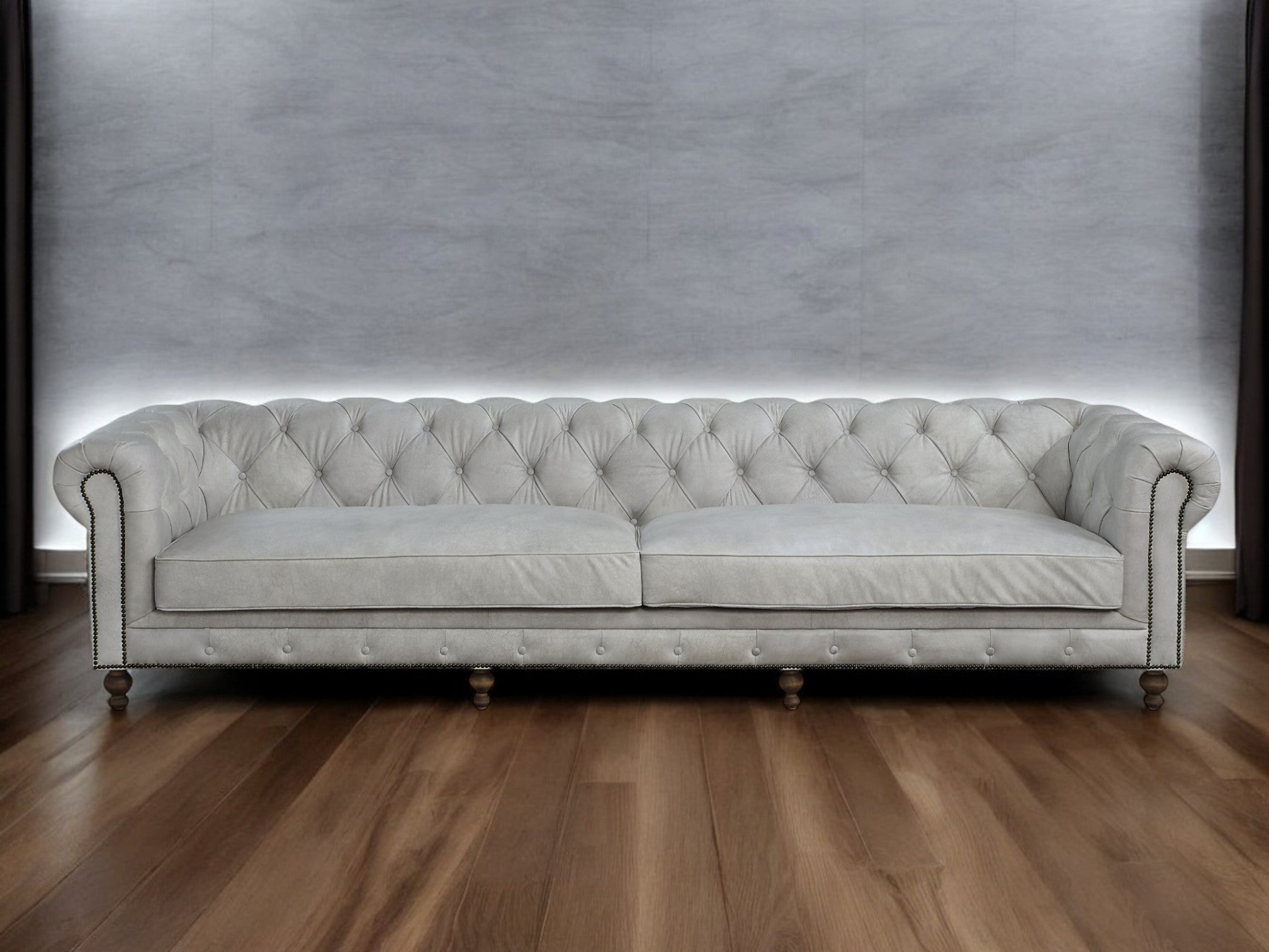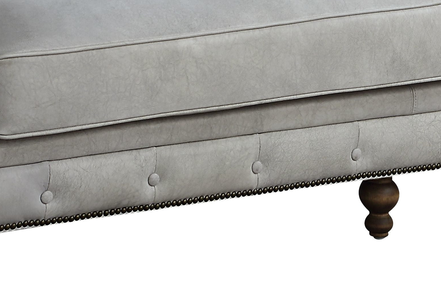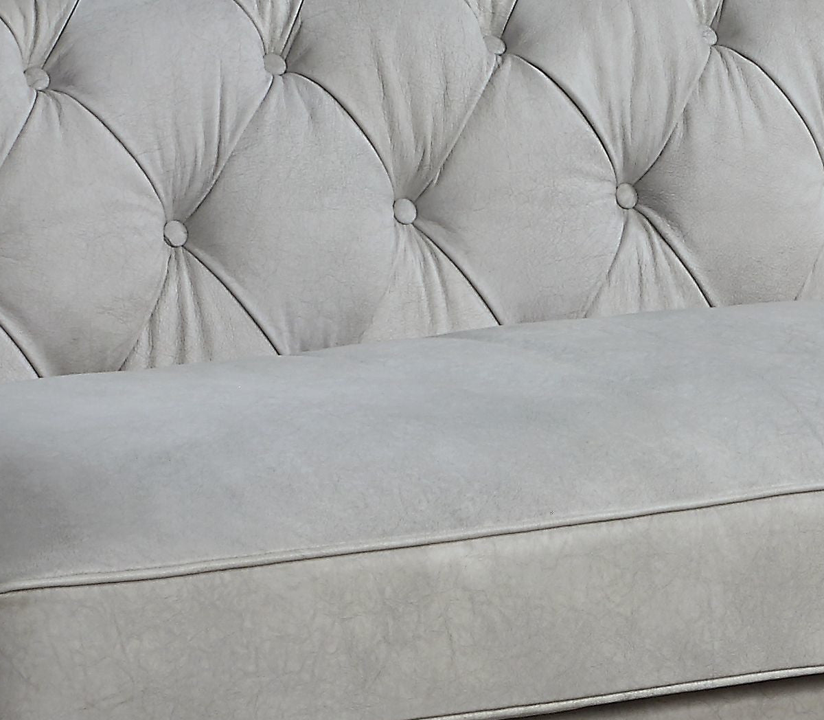 Discover timeless elegance with this vintage-inspired white leather sofa, designed to bring a refined yet comfortable presence to your living space. Crafted from top-grain leather and finished with classic details like button tufting and nailhead trim, it combines durable construction with sophisticated styling—ideal for both formal living rooms and relaxed family areas.