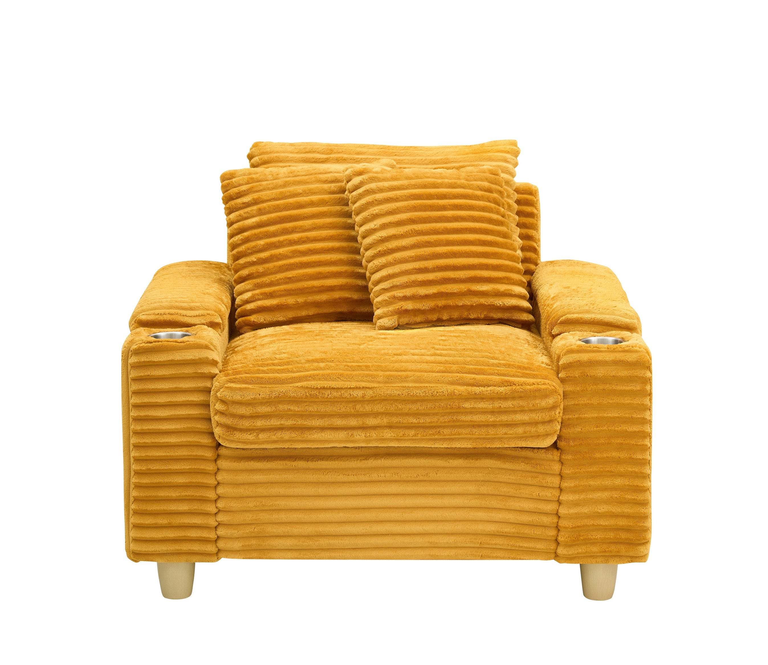 Introduce a warm, stylish centerpiece to your living space with this orange corduroy single sofa set—complete with one large pillow, two throw pillows, a matching ottoman, and built‑in storage for smart organization. Designed for comfort and versatility, the set blends soft corduroy upholstery, supportive sponge cushioning, and a sturdy solid‑wood frame to deliver long‑lasting use and contemporary appeal.