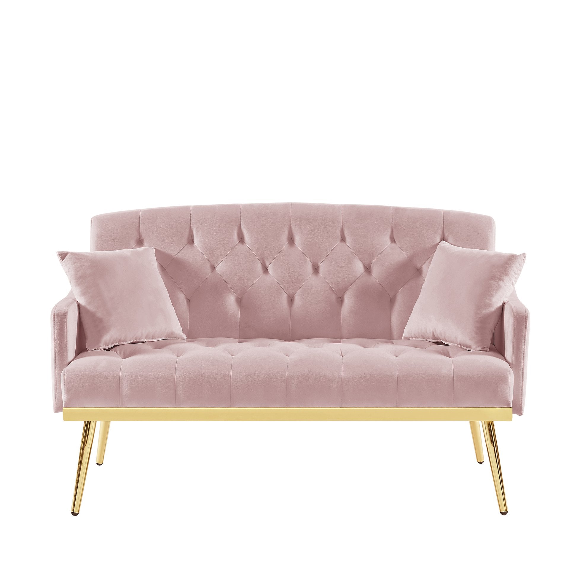 Brighten your living space with this chic pink two-seater sofa — a stylish blend of plush comfort and modern luxury. Perfect for small living rooms, bedrooms, or a cozy seating nook, it pairs soft velvet upholstery with eye-catching gold metal legs for an elegant, contemporary look.